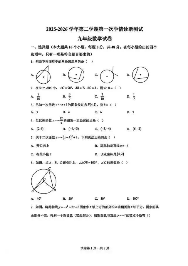 夸克网盘「2026年中考真题分类训练数学(含答案)」