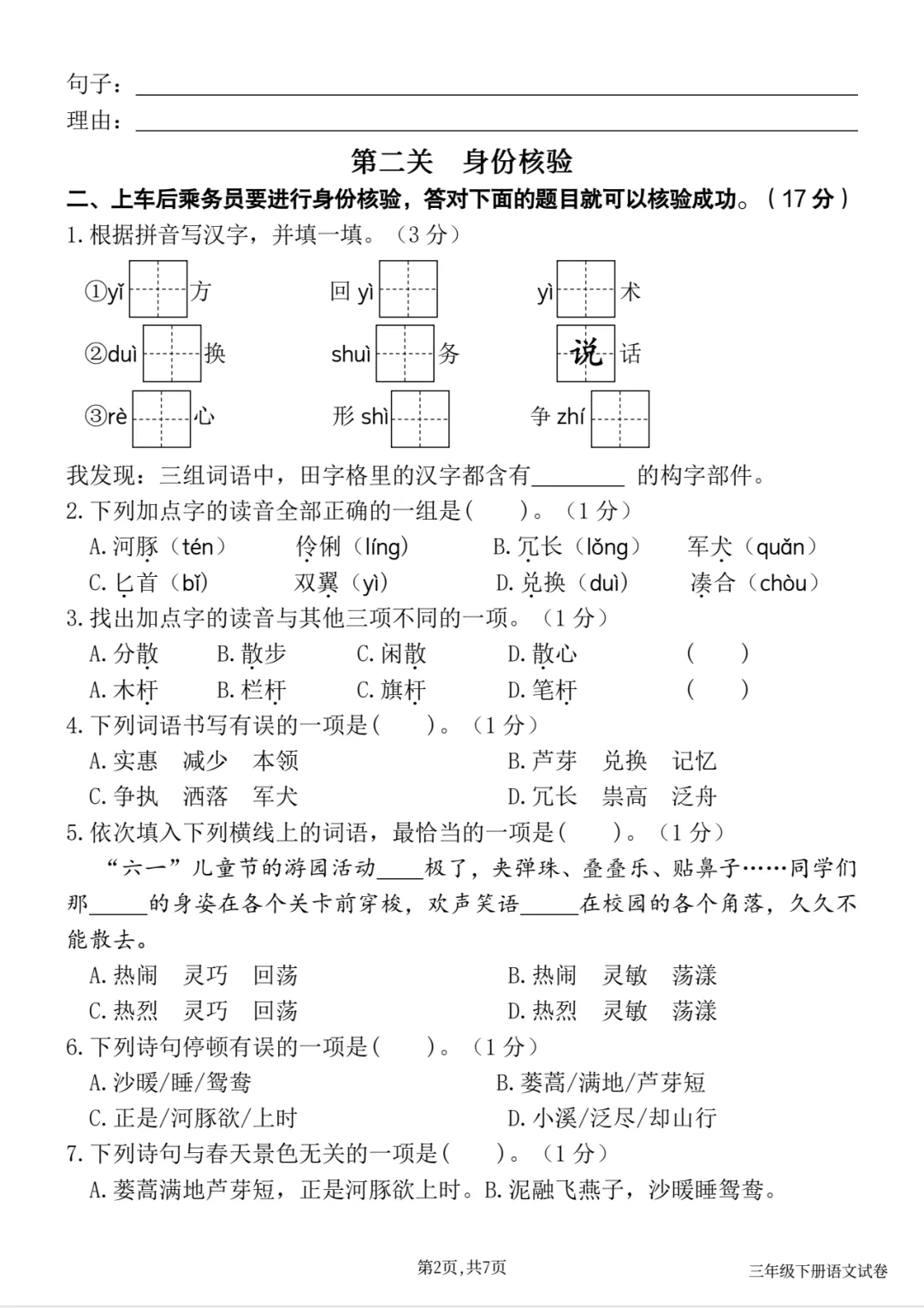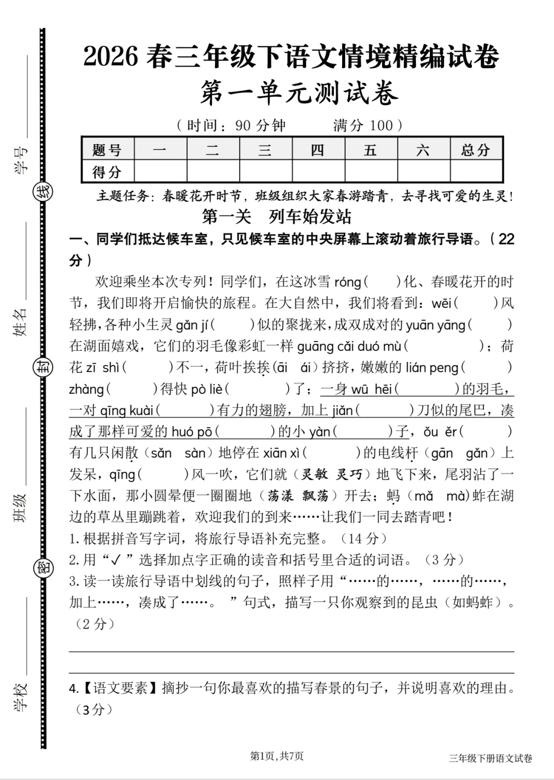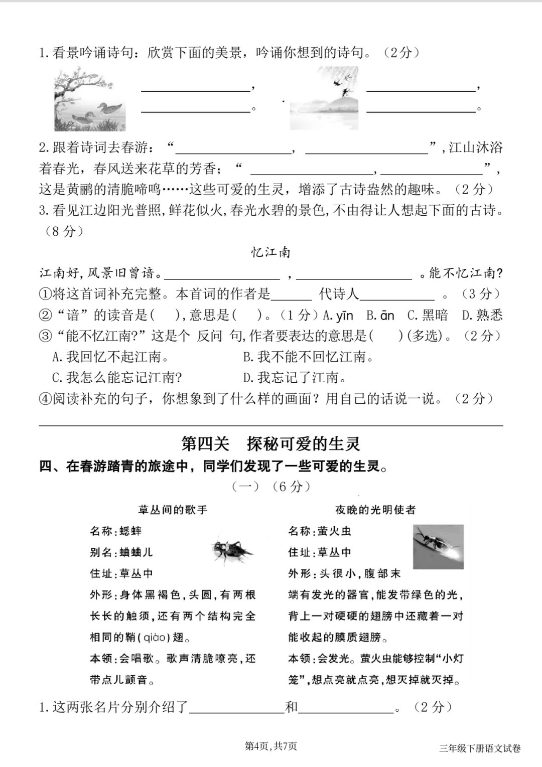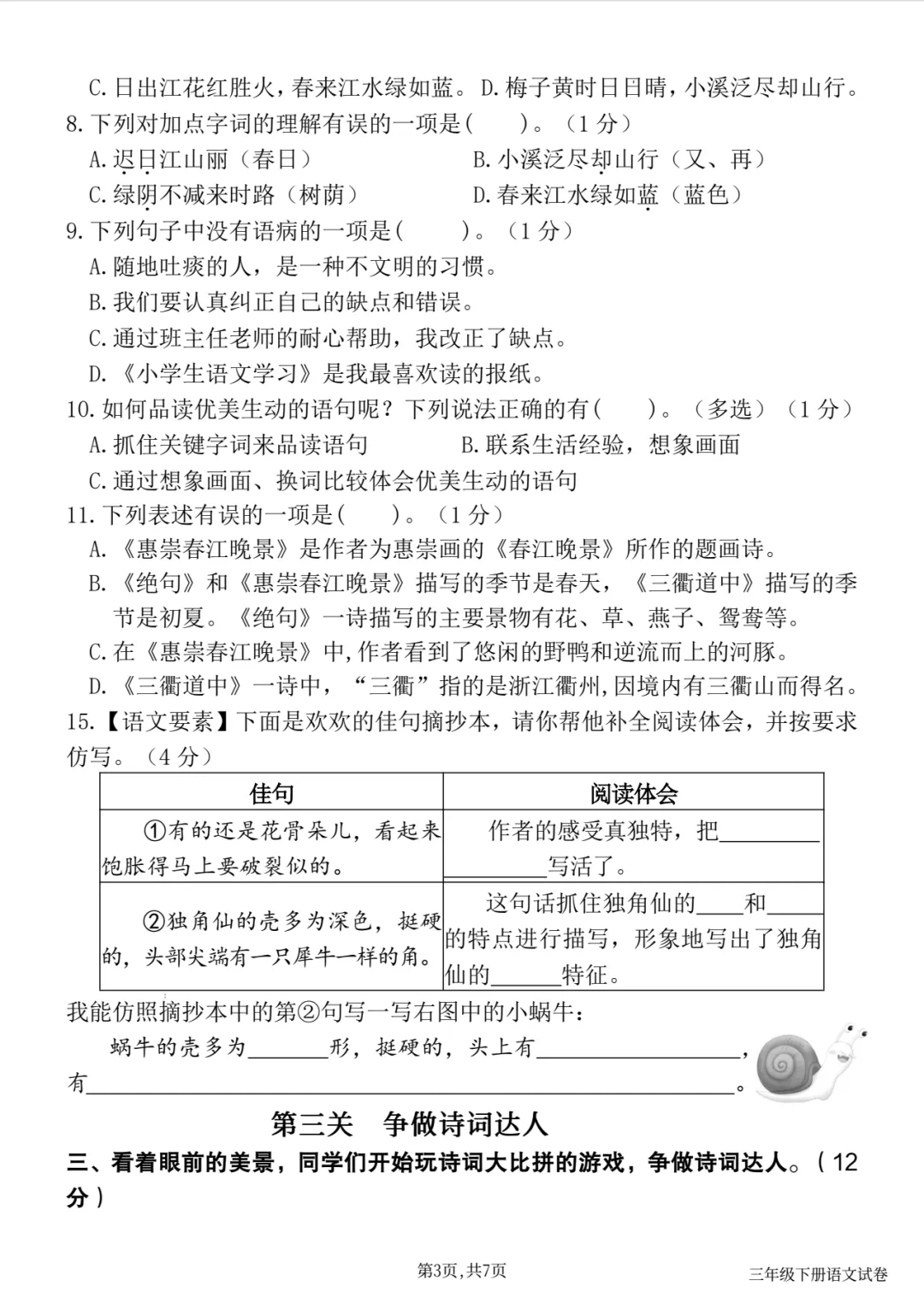 寒假预习| 三年级下册语文课文必背内容闯关表