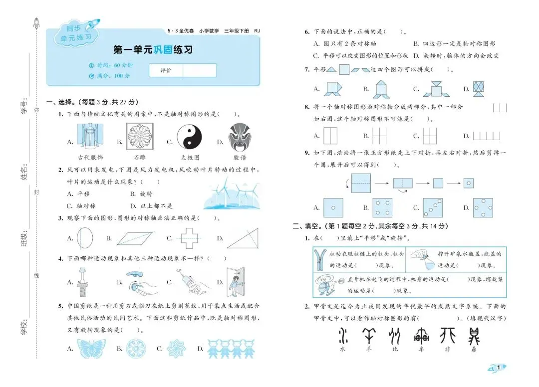 2026春人教版数学《53全优卷》试卷含答案 一二三四五六年级下册 电子版可打印