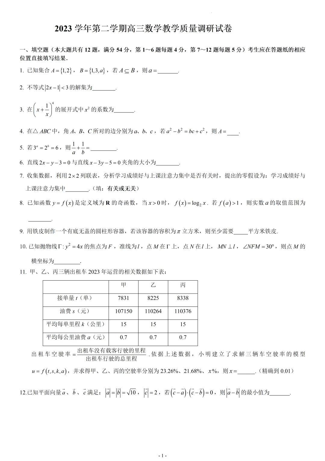 2025-202648本部一模数学试卷,需要答案的