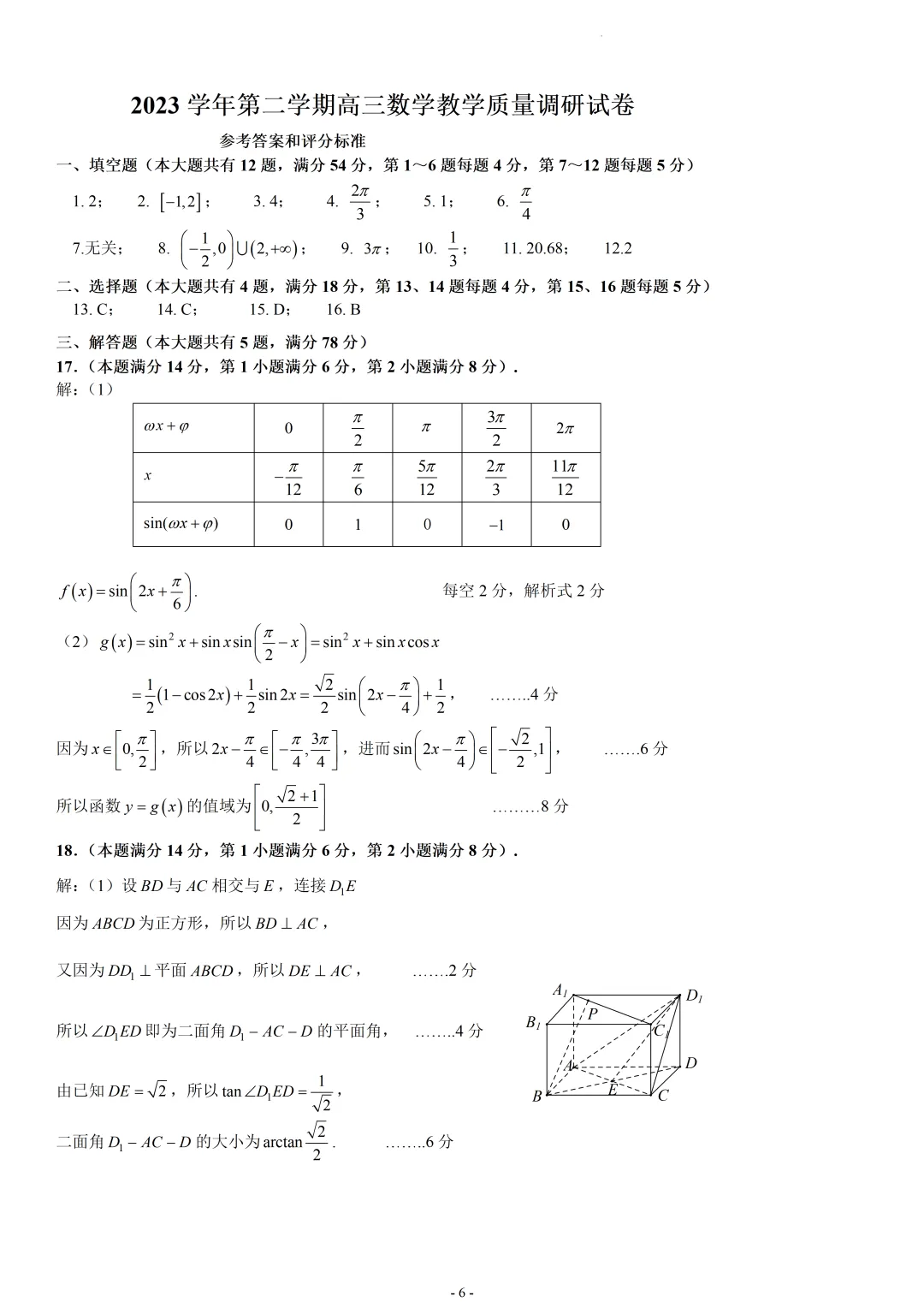 >上海2024届长宁区二模数学试卷及答案