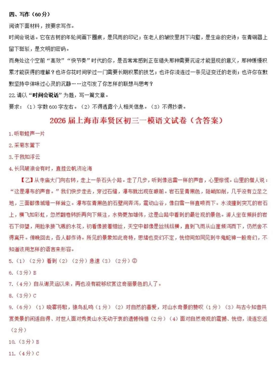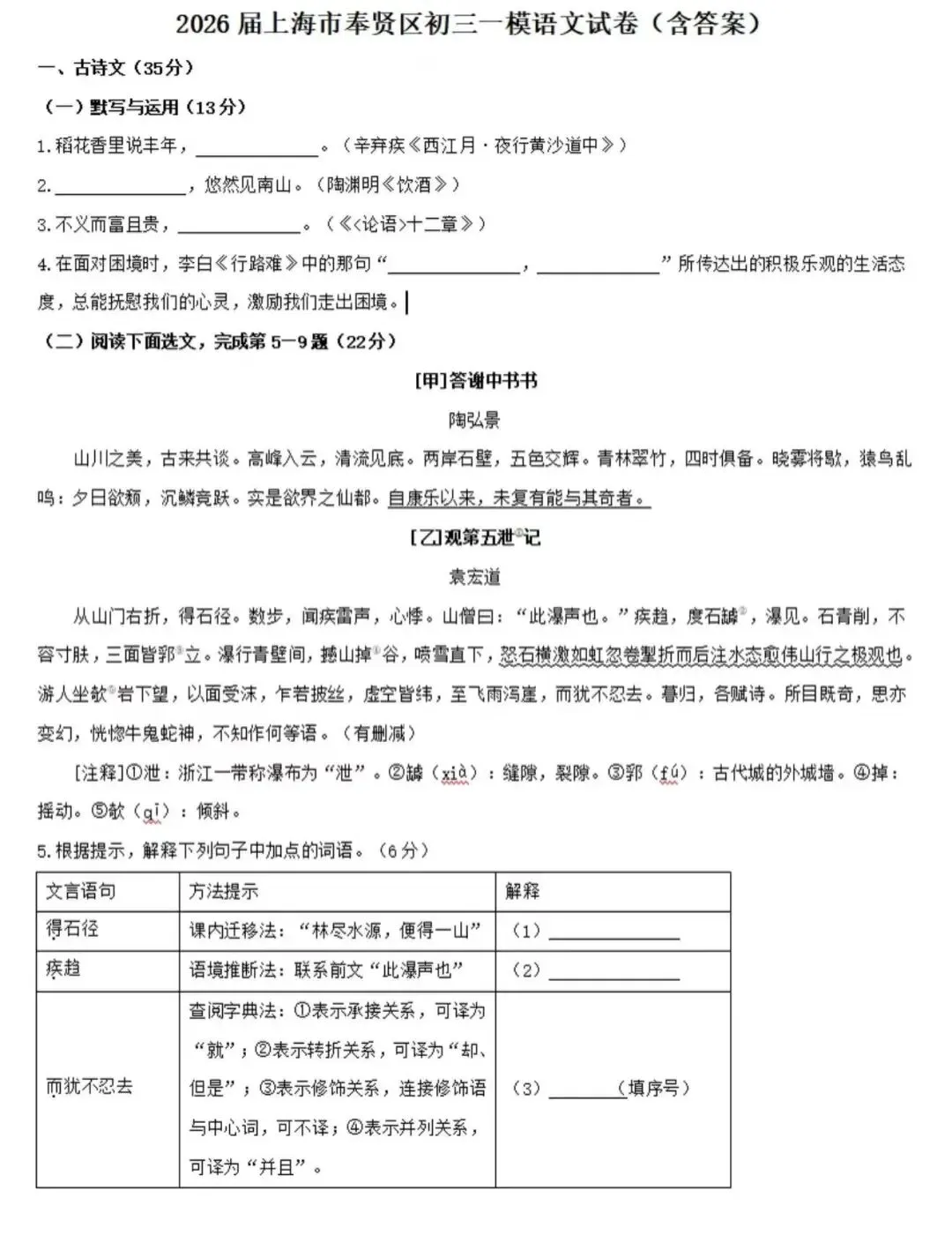 扫码发送【奉贤初三一模】即可免费获取完整版