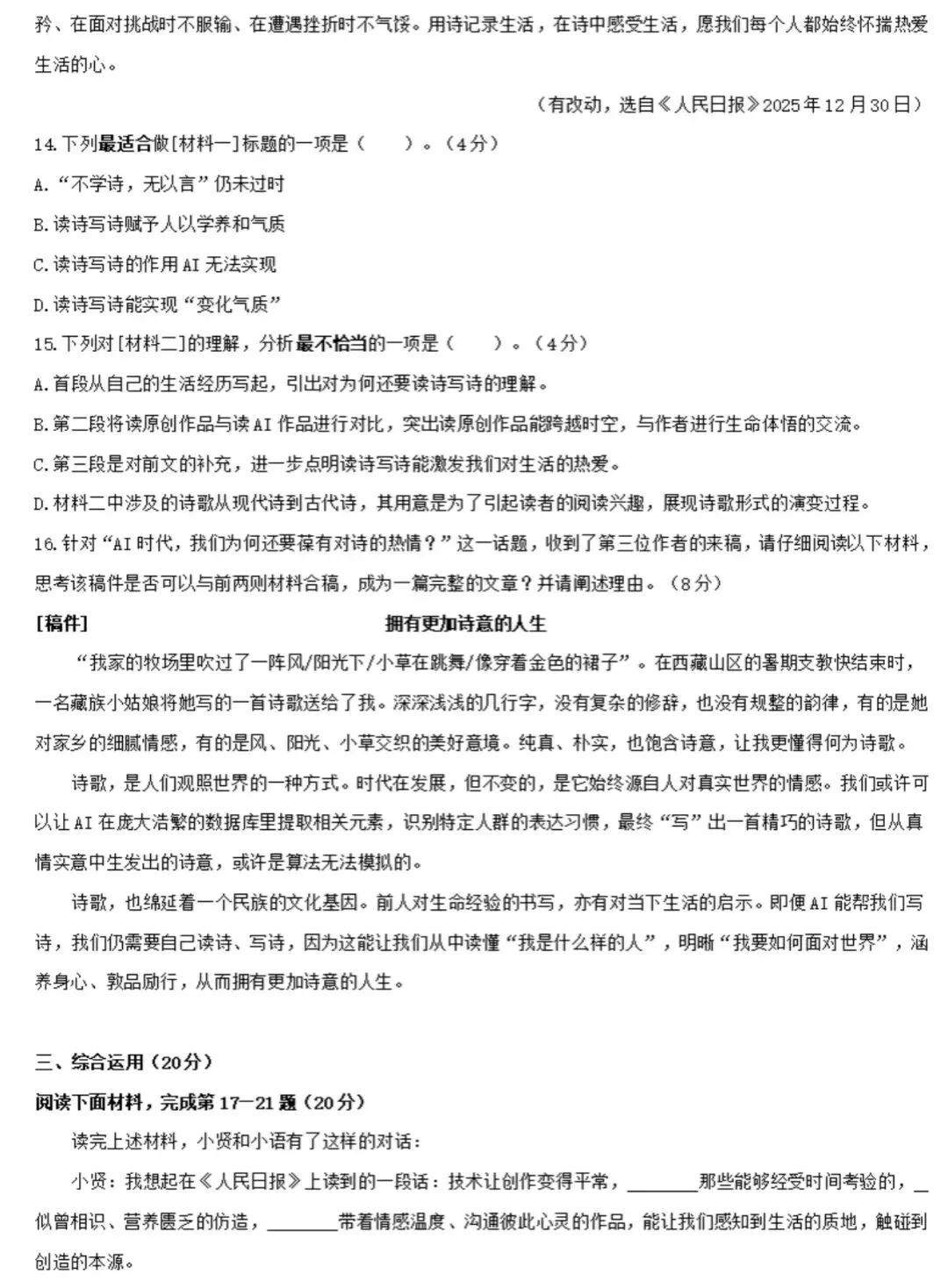 2026年安徽省考《行测》《申论》真题试卷及参考答案