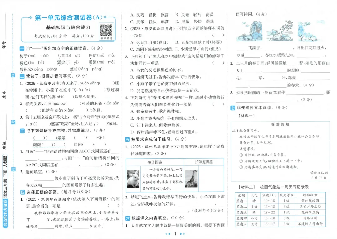 >26春1-6年级下册亮点给力大试卷人教版语文,有完整资料