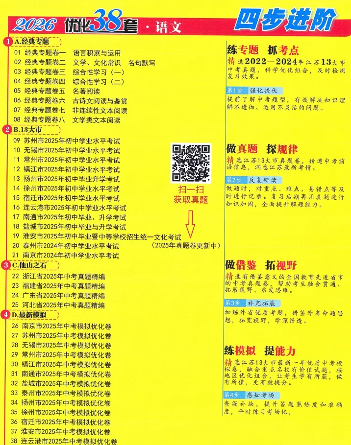 >26版《江苏13大市中考试卷与标准模拟优化38套》提优版 语文