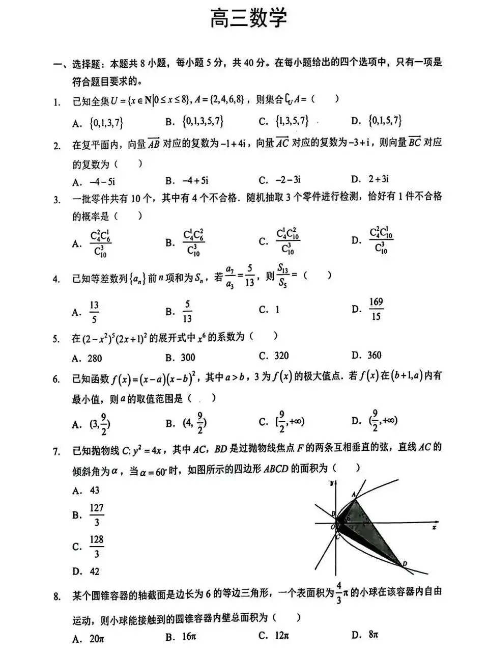 2026届高三一模数学试卷及答案