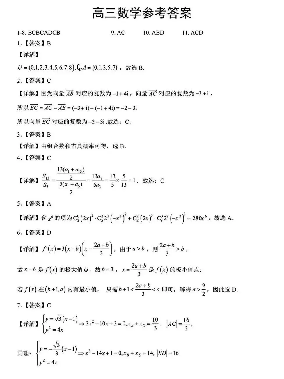 【湖北随州】2026届高三数学二模联考试卷+答案