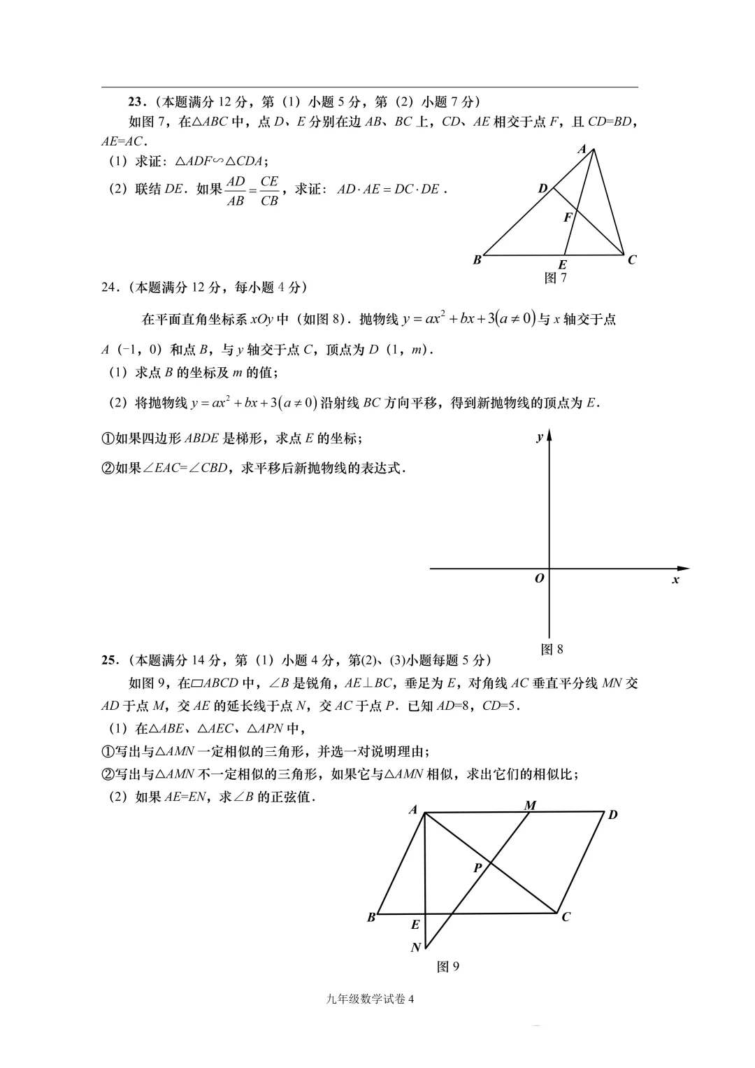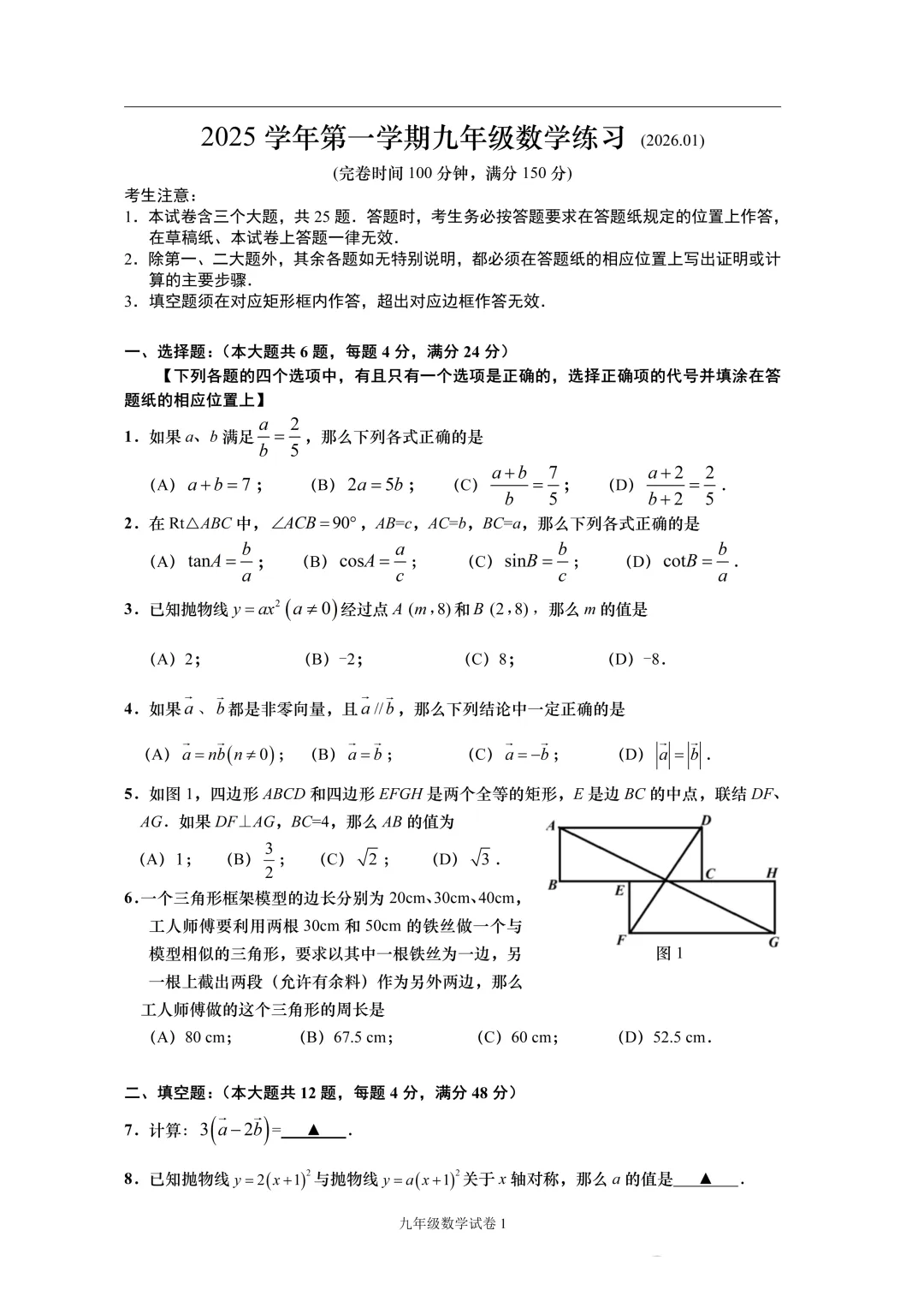 >上海市奉贤_2026初三一模数学试卷(含解析)电子版可下载