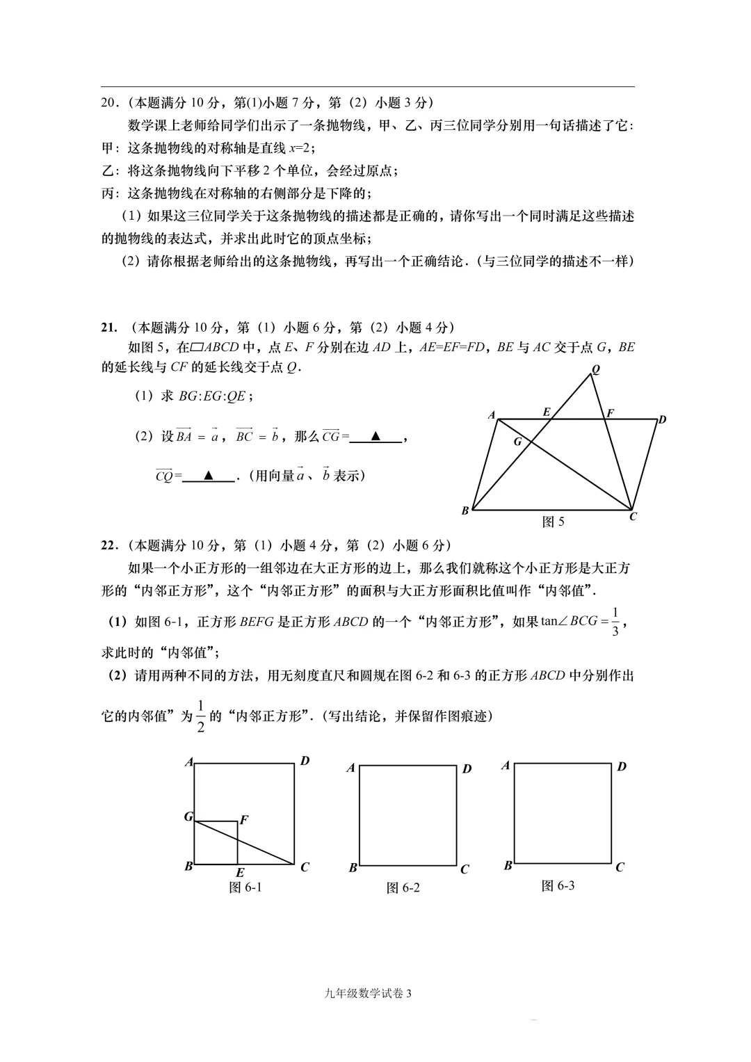 上海市奉贤_2026初三一模数学试卷(含解析)电子版可下载
