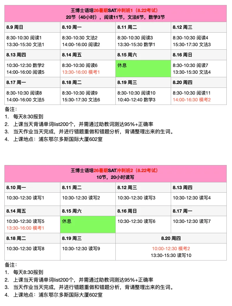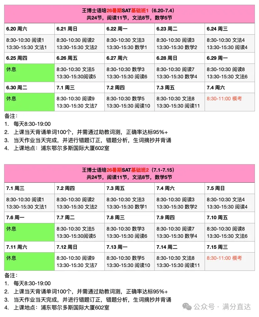 春季和暑期SAT课程火热招生中