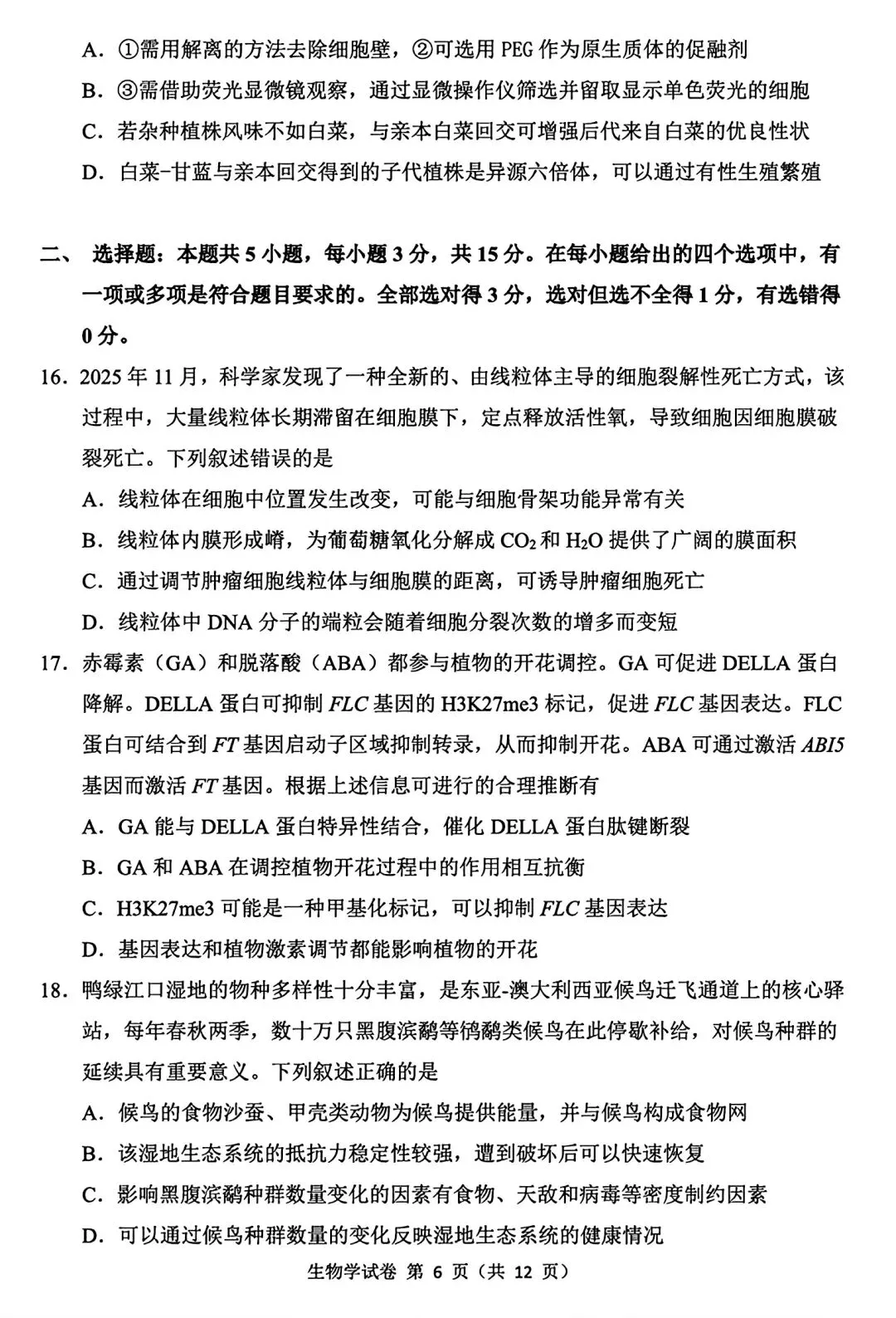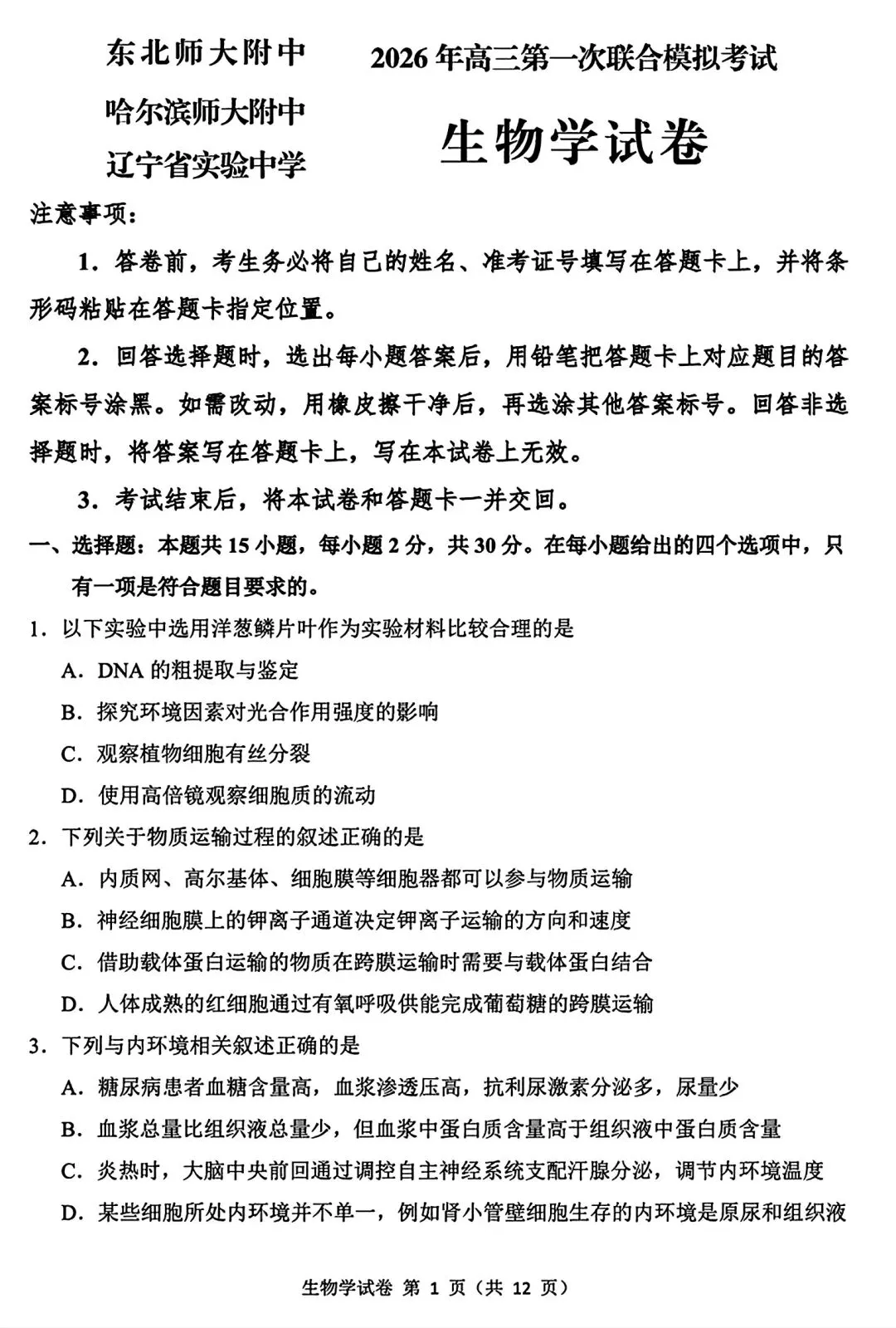 2025-2026东北三省三校高三下一模生物含答案(无水印).pdf