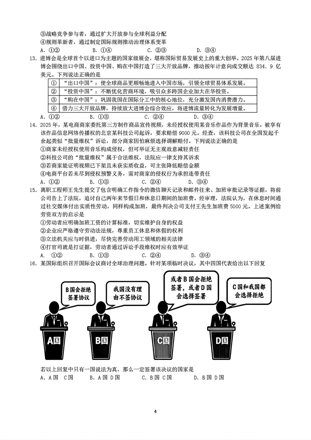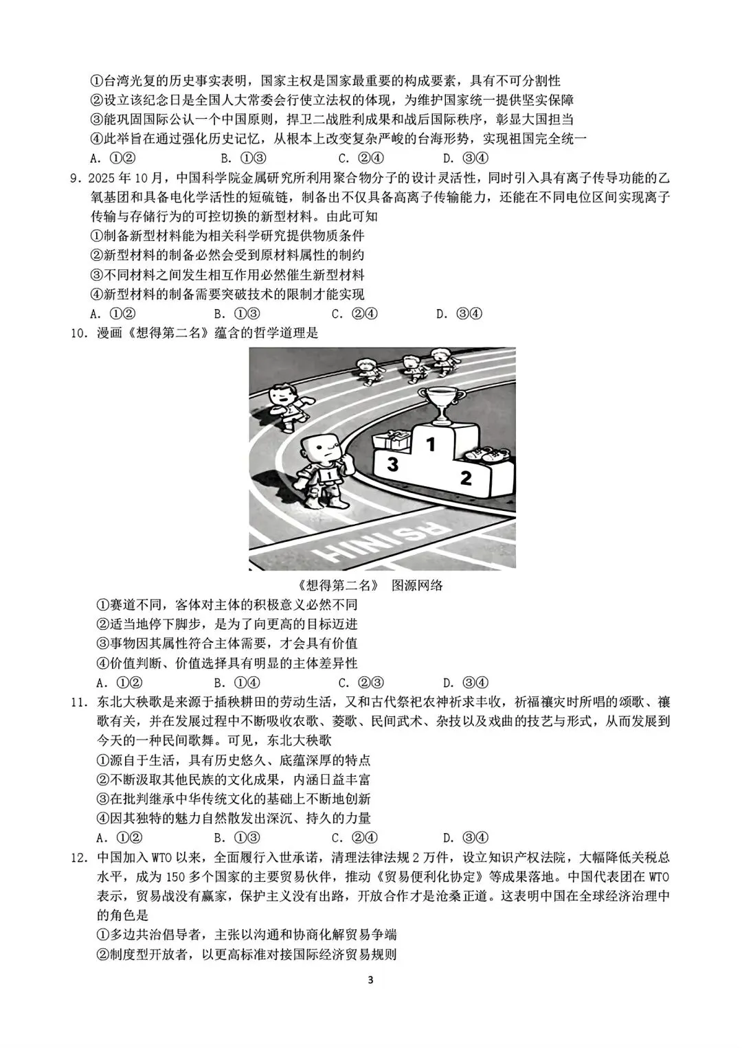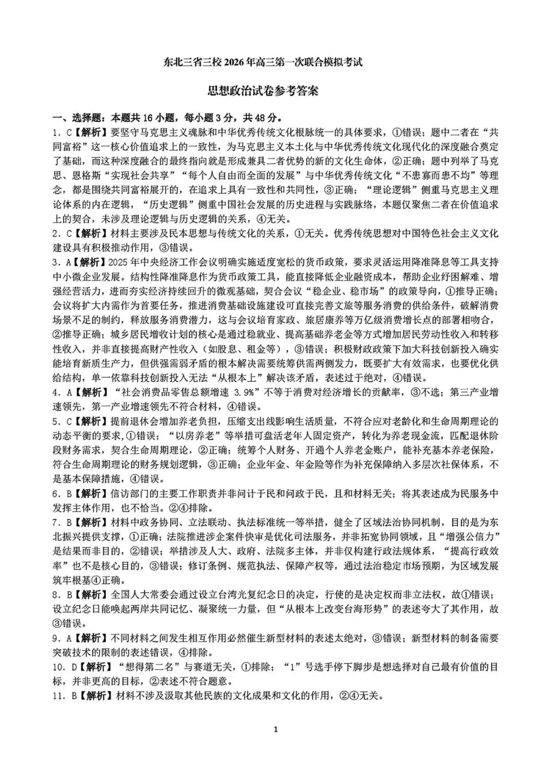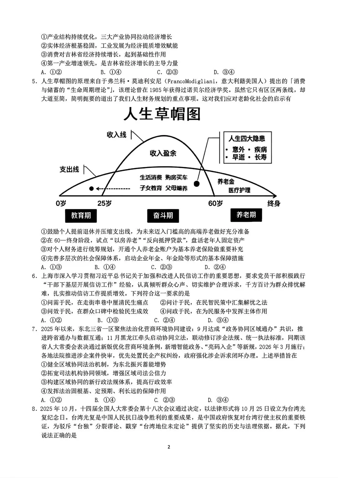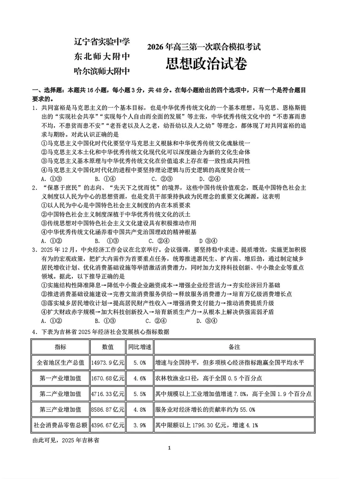 2025-2026东北三省三校高三下一模政治含答案(无水印).pdf