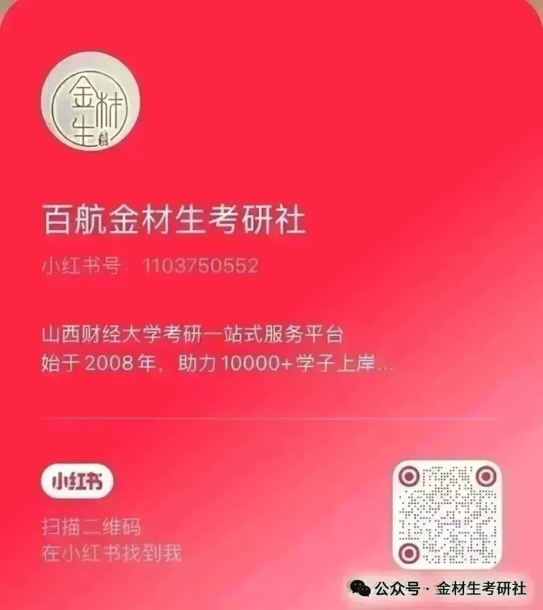 报考山西财经大学2026、2027考研的小伙伴们,需要初试、复试资料以及一对一辅导的可以添加社长:始于2008年山西财经大学南校区(坞城校区)家属院以及平阳校区(西校区),是继当年太原光华考研培训学校、新文化考研、辰晨考研(以上三家是当时专注于做山西财经大学考研专业课的机构)之后最早专做山西财经大学考研初试、复试的权威机构,历时十八年如一日专业品质,热忱服务于每一位有志报考山西财经大学研究生优秀学子!添加请注明:(报考院校+专业+本科毕业院校及专业)山西财经大学2026、2027考研,欢迎交流咨询,初试、复试资料正在预售中,一对一辅导班正在报名!欢迎详询。