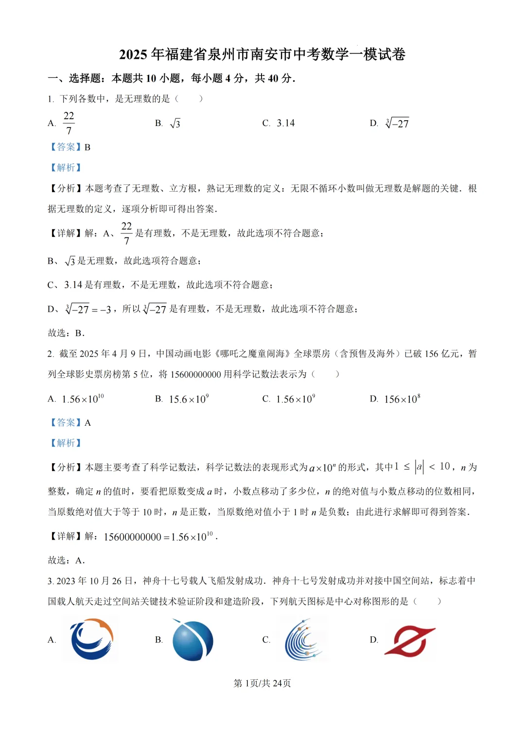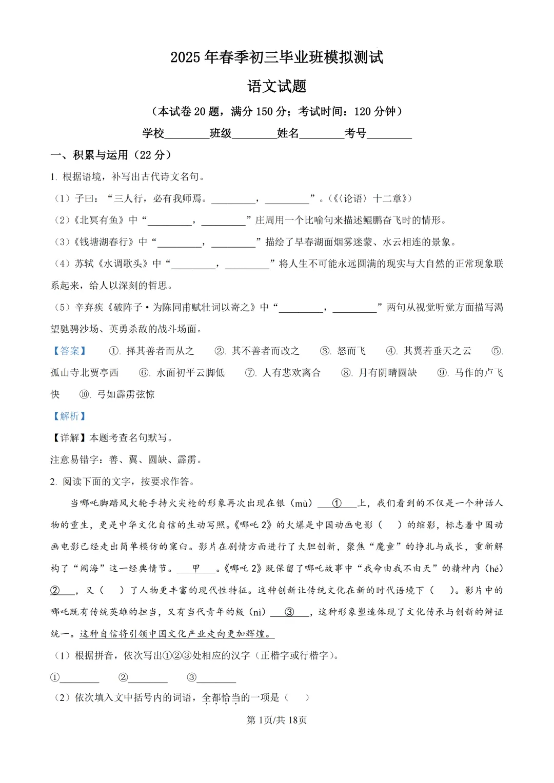 (数学 | 语文)试题及答案解析!