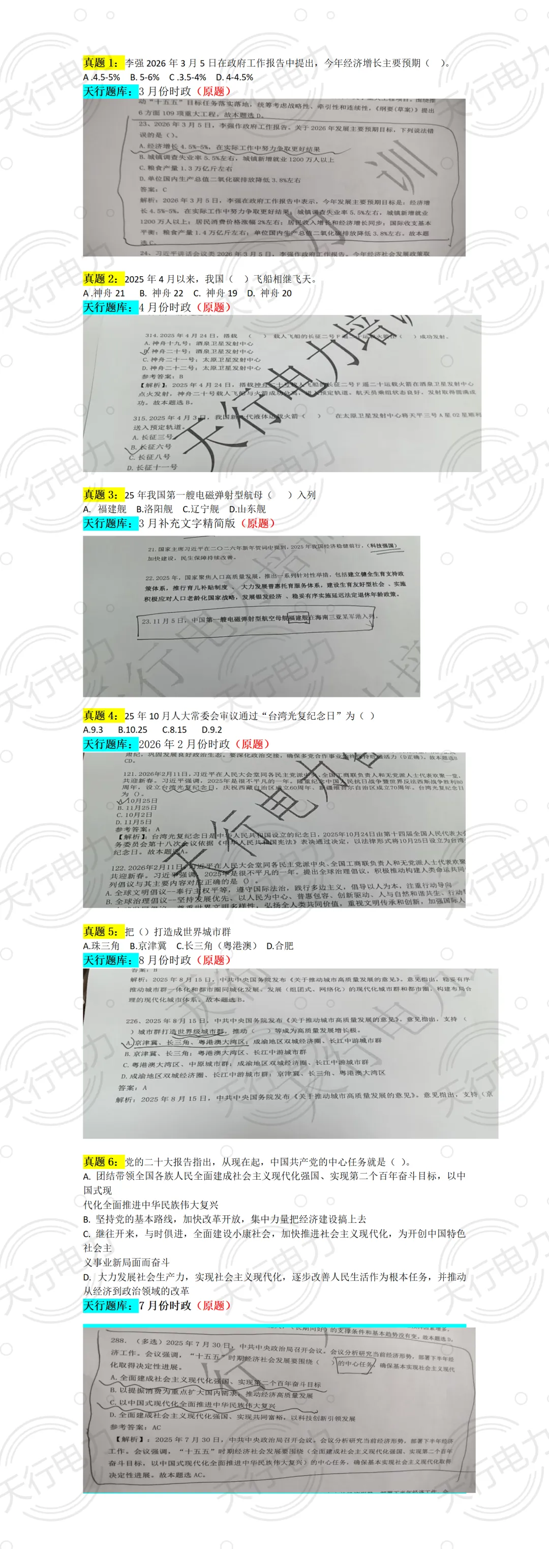 【时政部分:6道题目全部命中!】