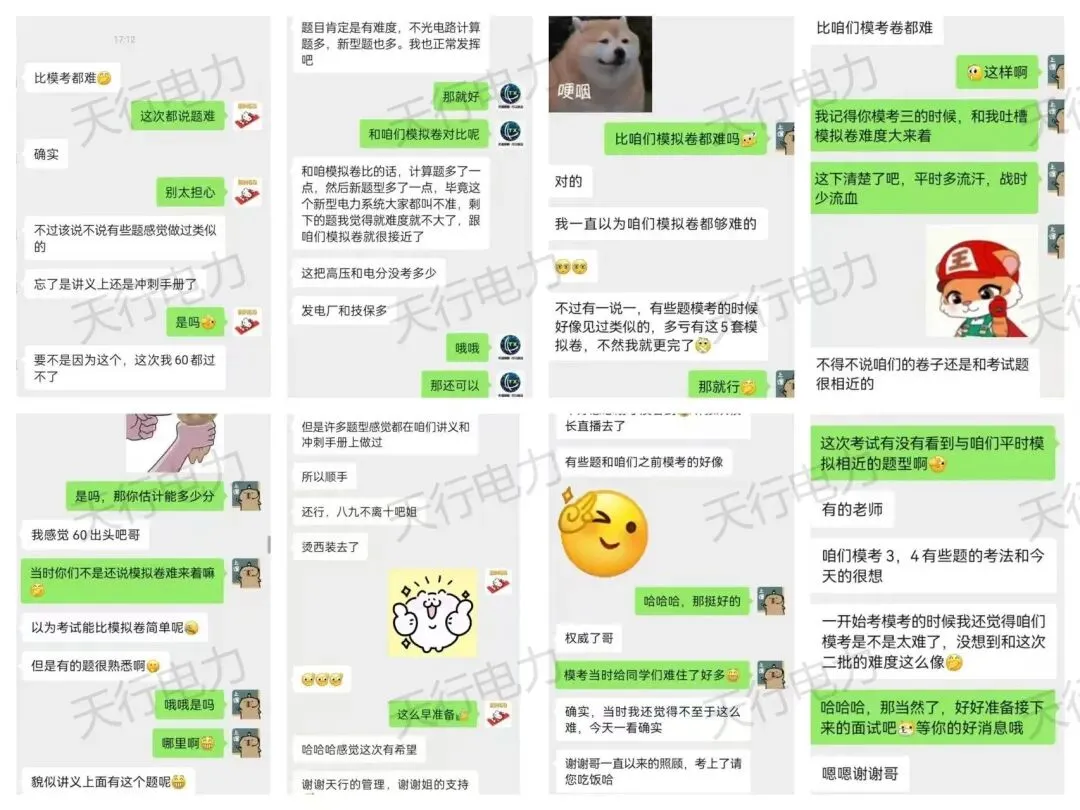 本次国网二批笔试中,天行电力凭借专业的教研实力,命中了60%的真题考点。从基础概念到核心难点,我们在课程讲解、题库训练和模拟考场的全真测试中反复强化,助力学员在考场上从容应对,轻松拿下关键得分点。