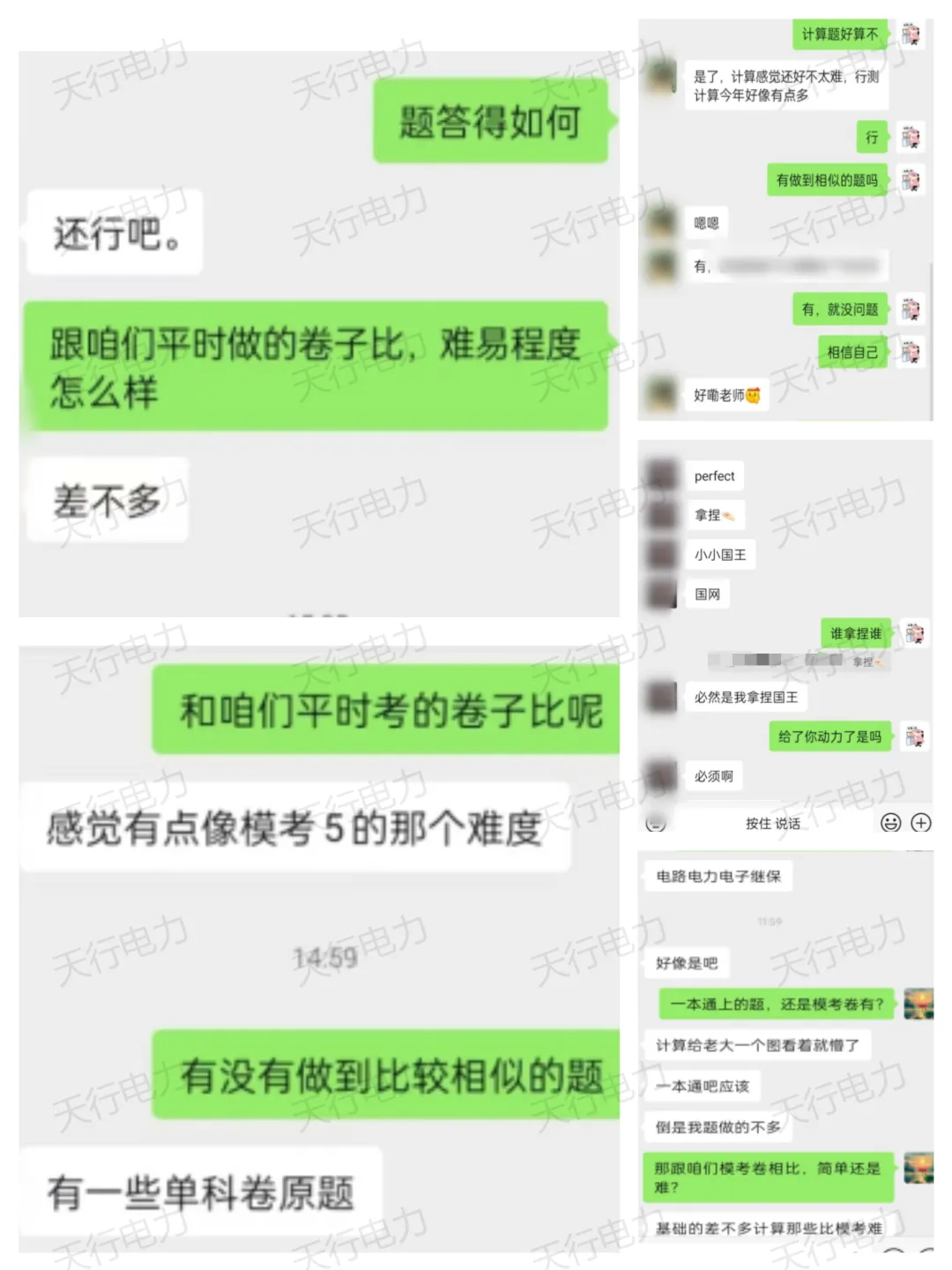 考试结束,来看看各专业同学们的反馈吧,通过学生的反馈不仅展现出天行教研团队在日常教学工作中认真备课的态度,科学推测出题方向,也能看出同学们平常都在积极备考,认真学习!