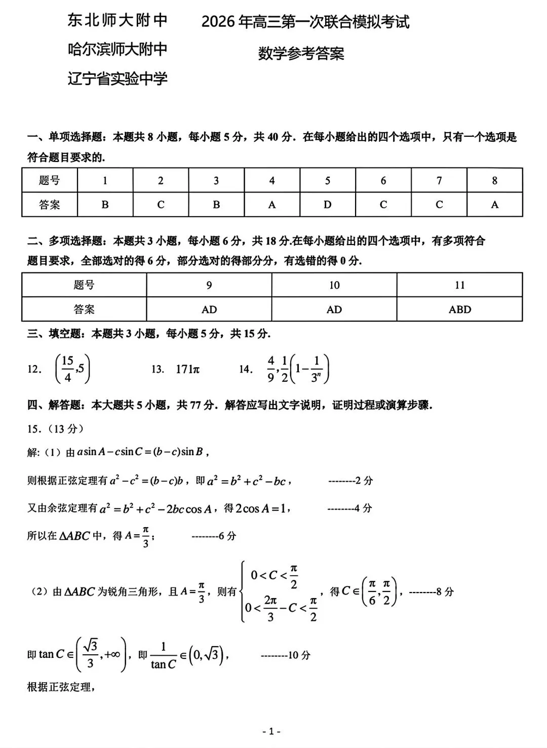 2025-2026辽宁名校联盟高三下3月数学含答案(无水印).pdf