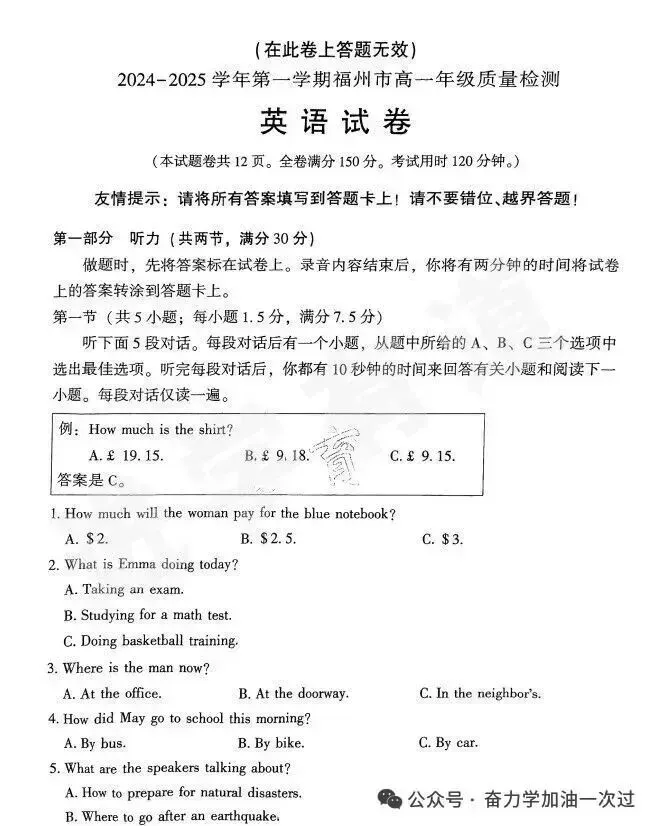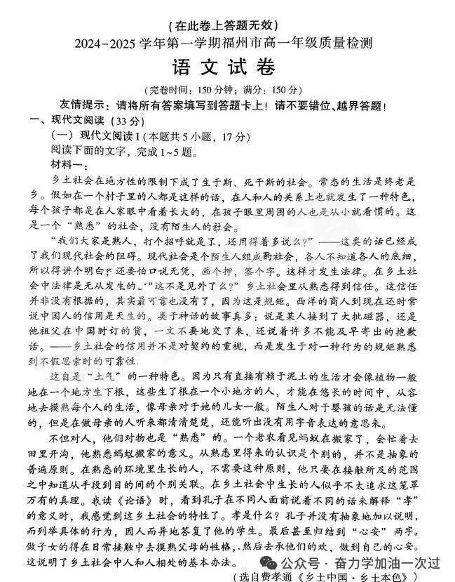 【福建高一期末复盘必备】2024-2025学年福建高一期末试卷+答案全科汇总来啦!覆盖语数英史地政理化生九科,适配部编版、人教A版等教材,贴合福建本地质检范围及必修模块考点。试卷含选择、填空、解答全题型,还关联《乡土中国》等核心考点,附逐题解析与易错点标注。