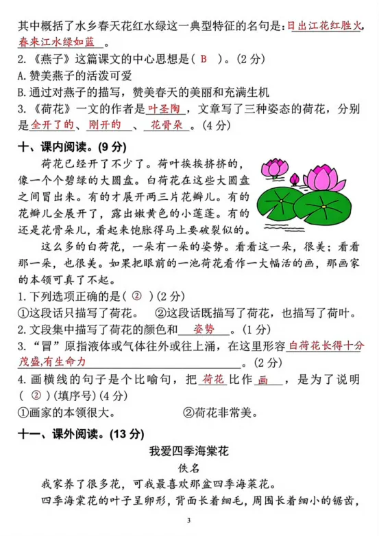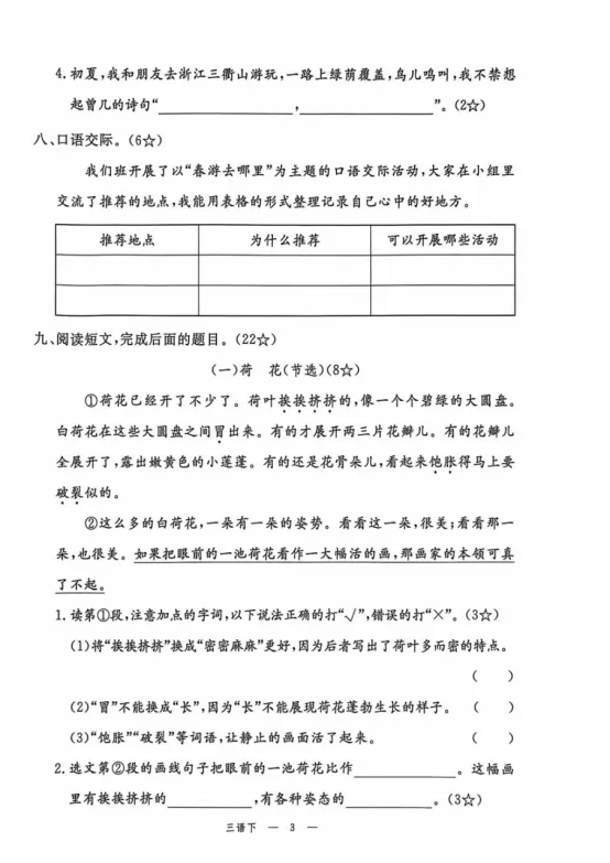 2026春《七彩语文乐园配套试卷》语文三年级下册��