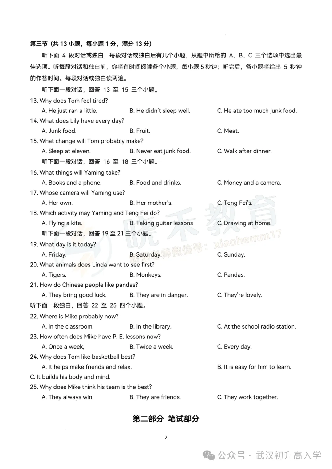 【八年级江岸区英语期中试卷】2024-2025下学期