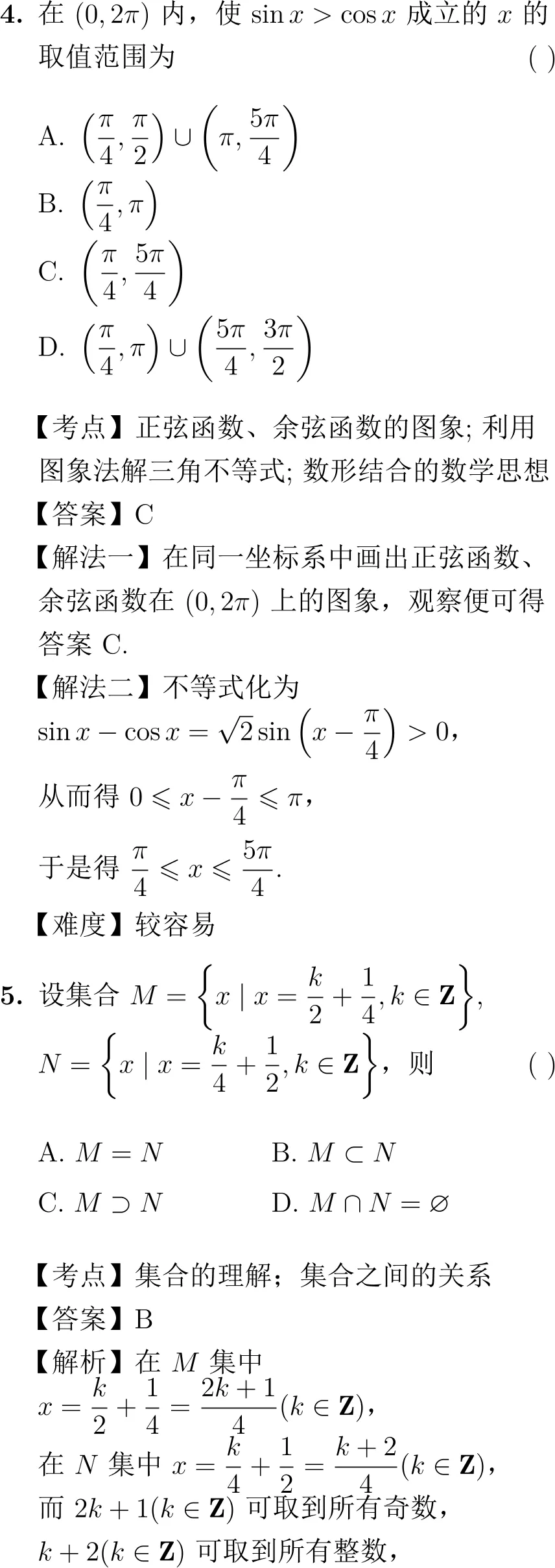 第5题(集合):题目设计巧妙,通过集合表示形式的差异,考查学生对整数性质的理解和集合关系的判断,点评指出其“设计比较隐晦”,得分率可能较低。
