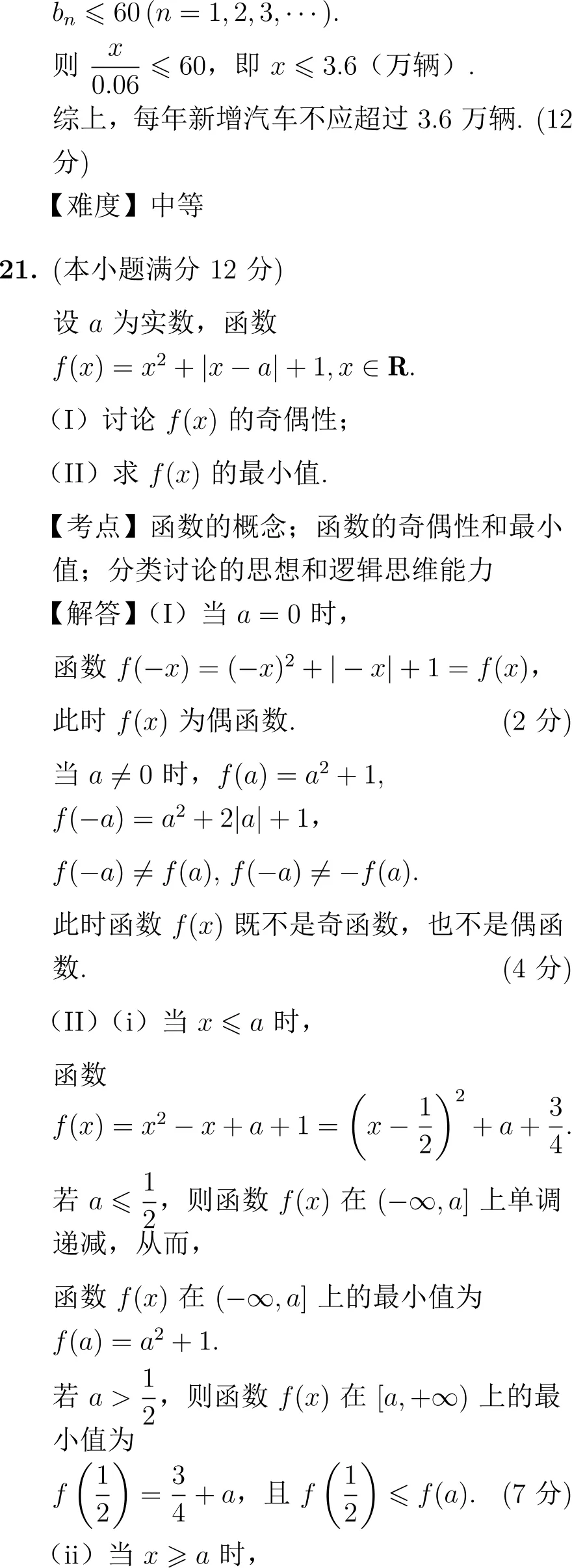 第21题(函数综合):考查含绝对值函数的奇偶性讨论和最小值求解。
