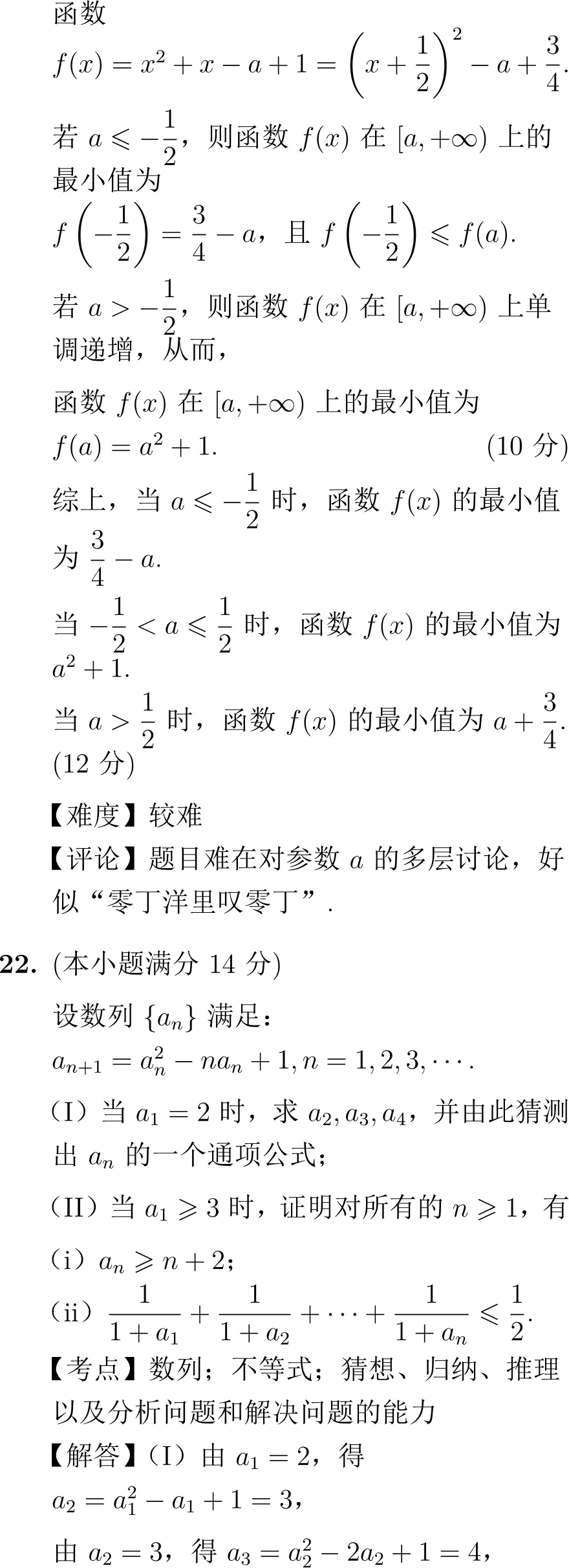 点评:正如试卷点评所言,“难在对参数a的多层讨论”,这道题能有效区分学生的逻辑思维严密性和分类讨论思想的掌握程度。