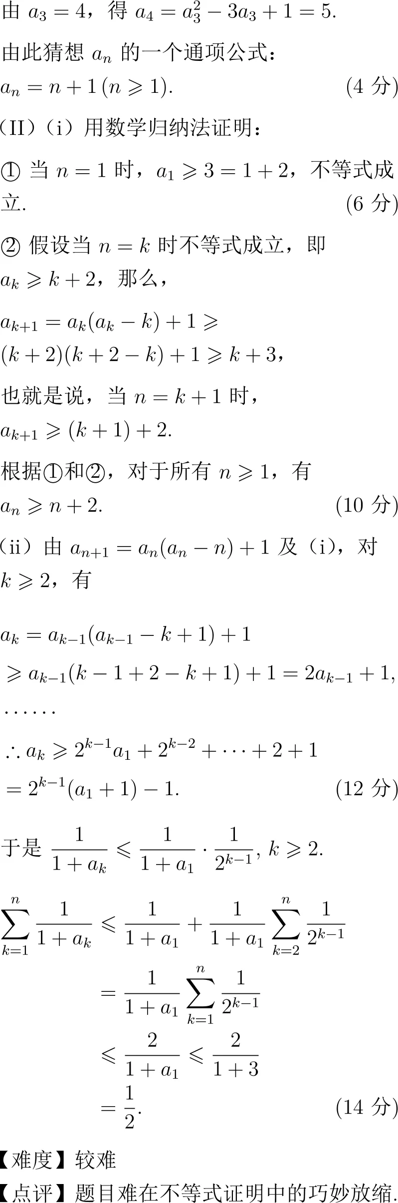 考查内容:数列的通项猜想、数学归纳法证明、不等式的放缩法证明。