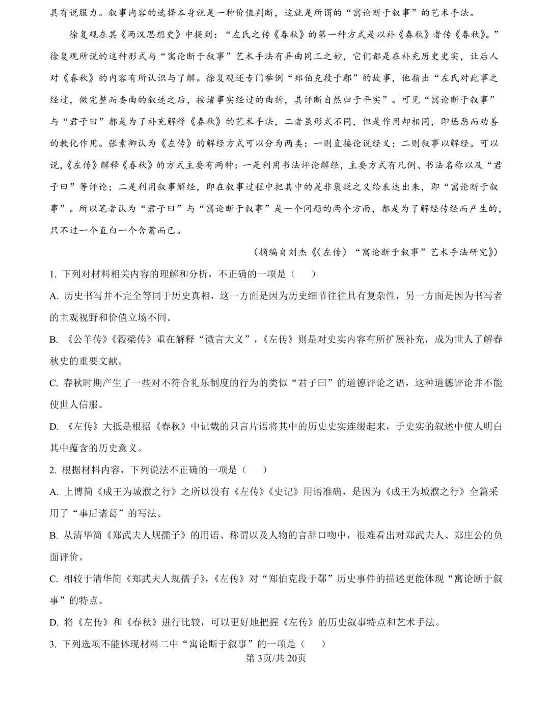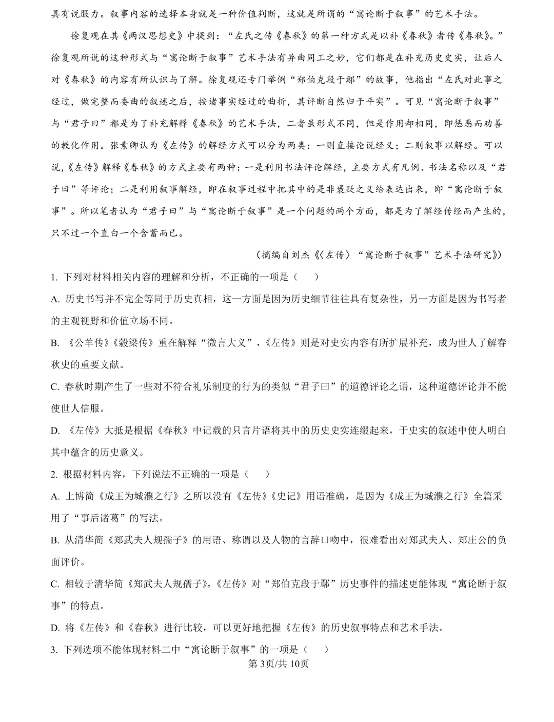 2026年3月黄冈市高三年级模拟考语文试卷及答案
