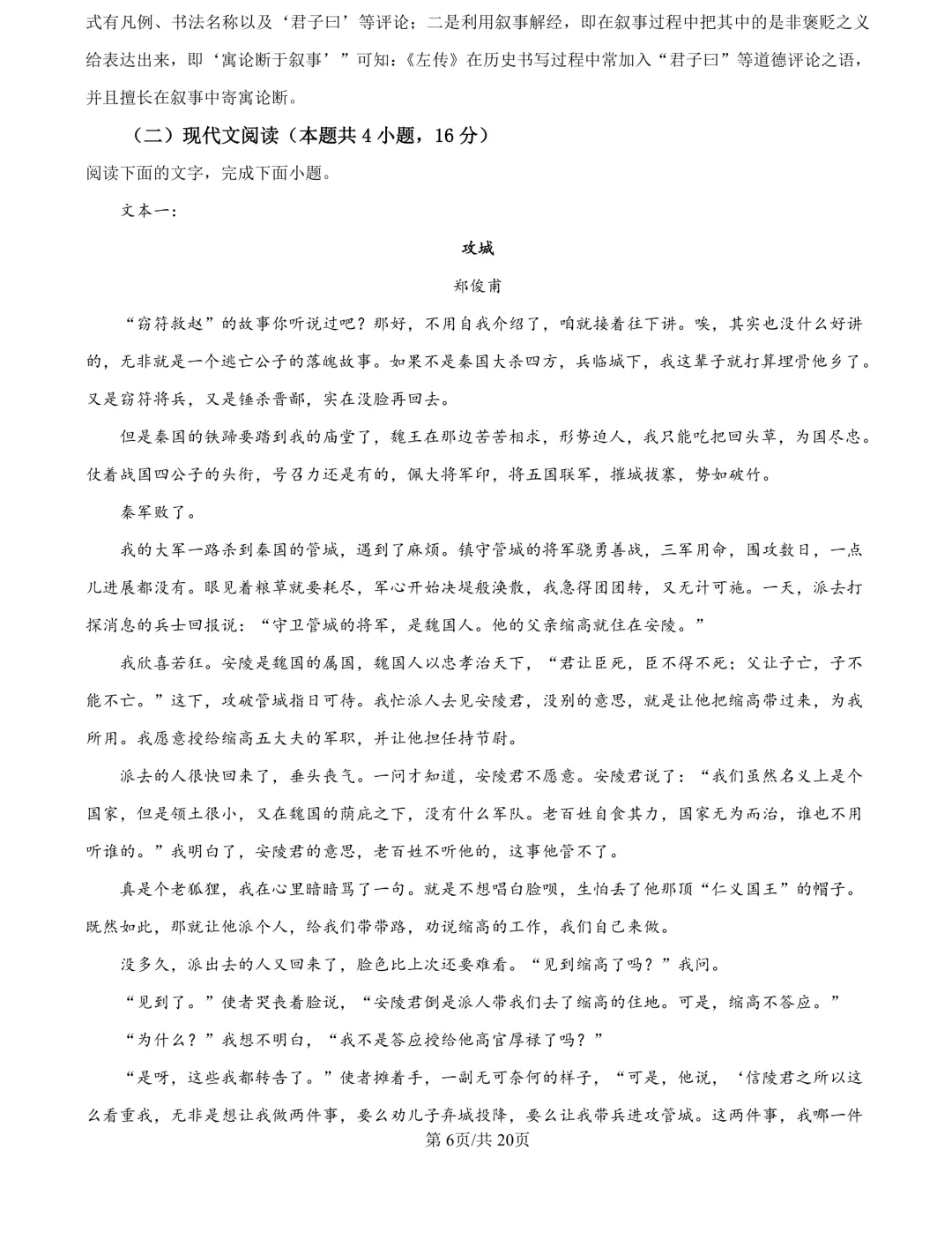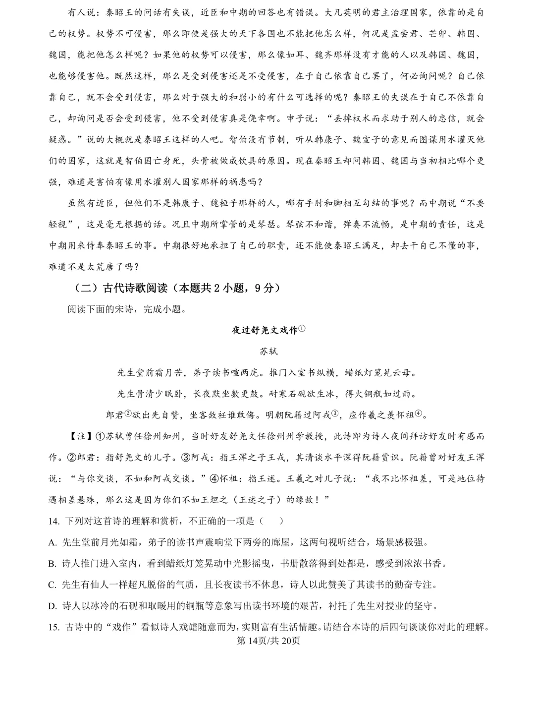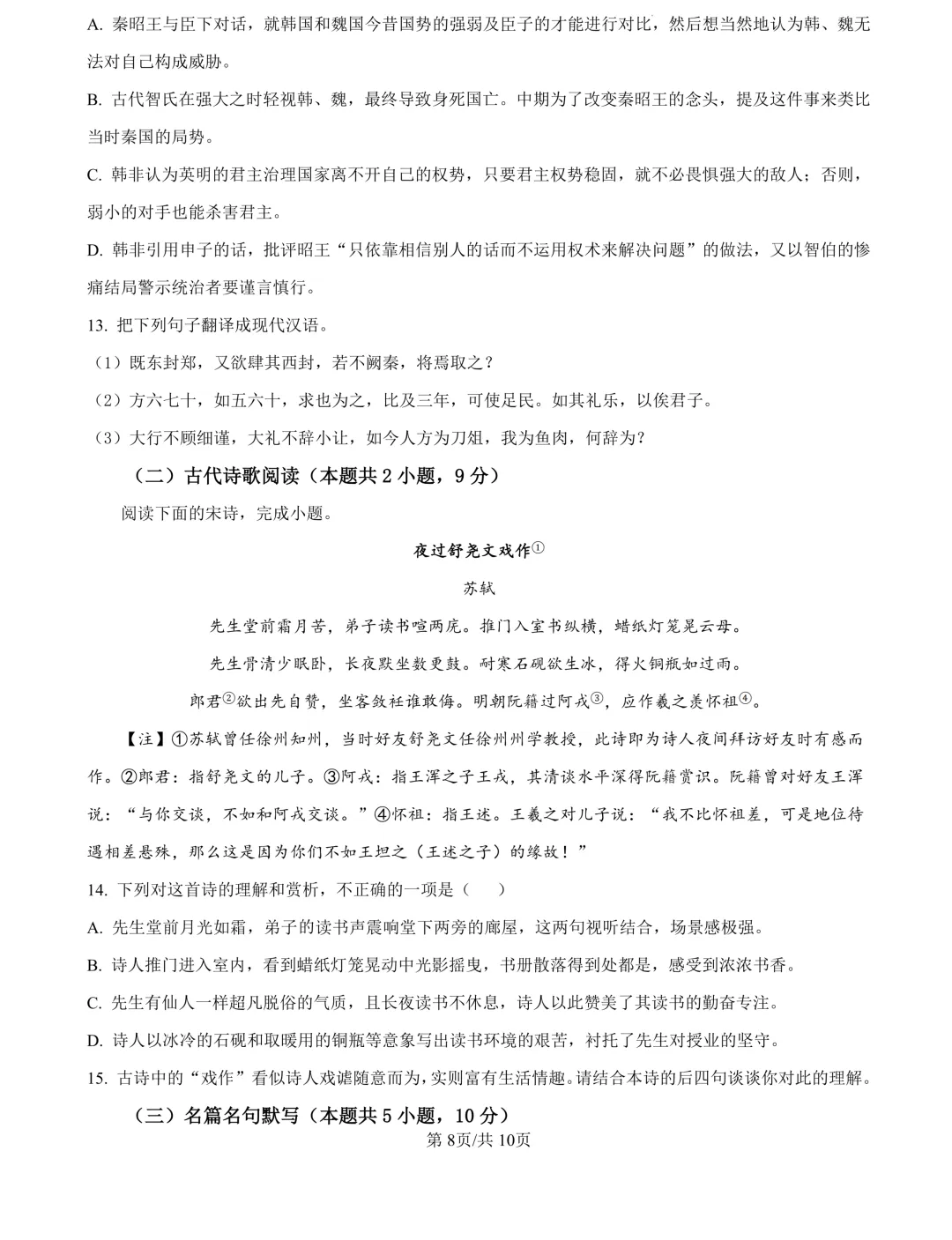 陕西省初中学业水平考试语文学科试卷示例(三)
