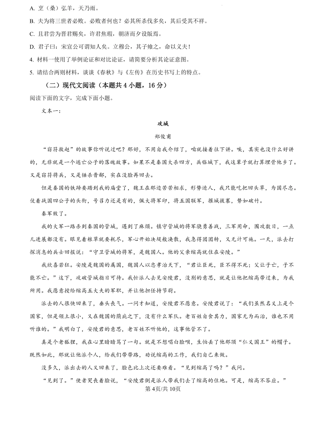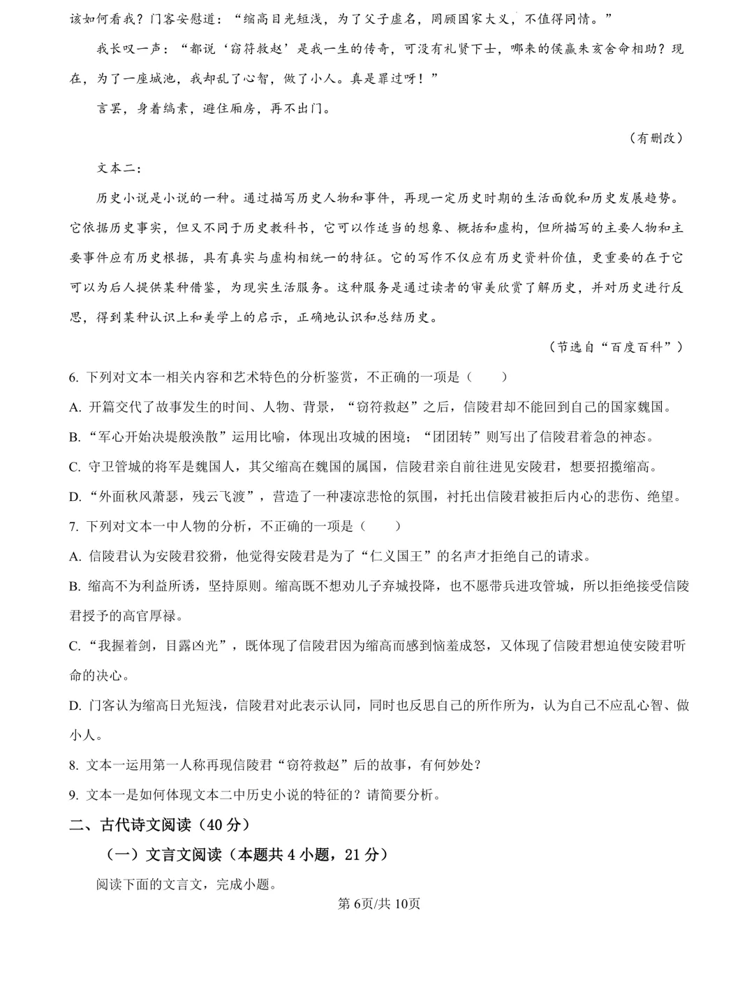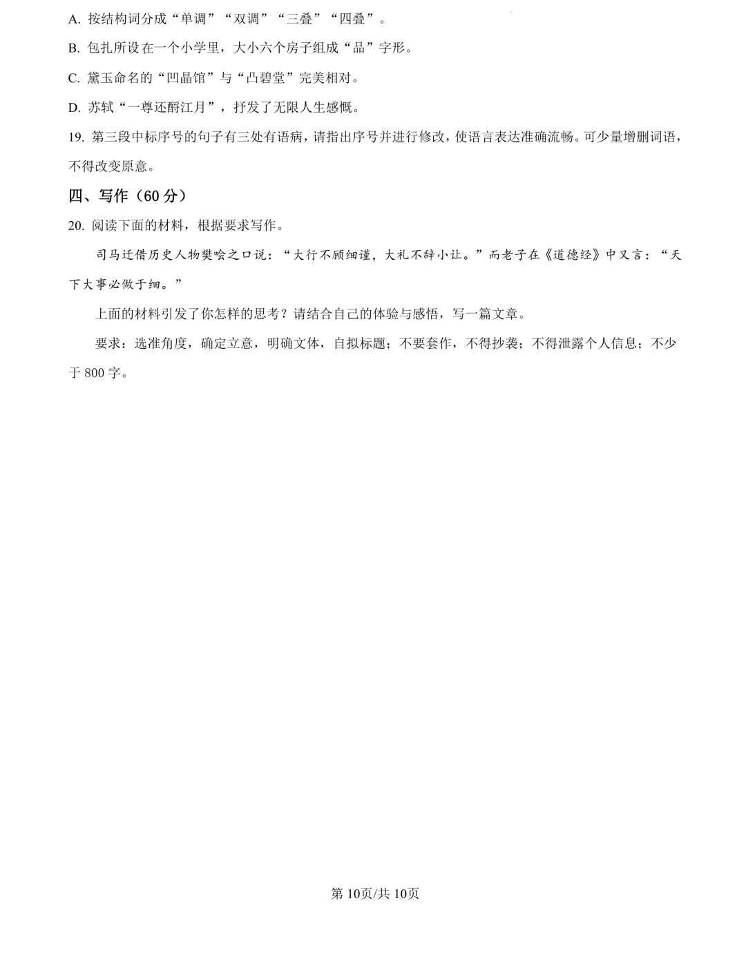 陕西省初中学业水平考试语文学科试卷示例(三)