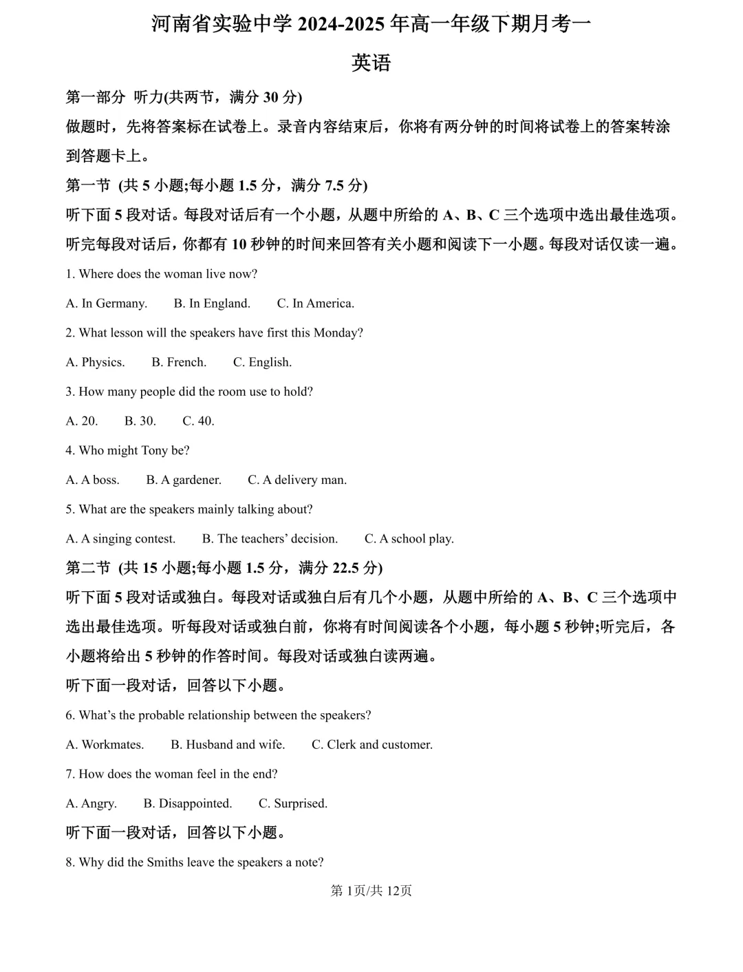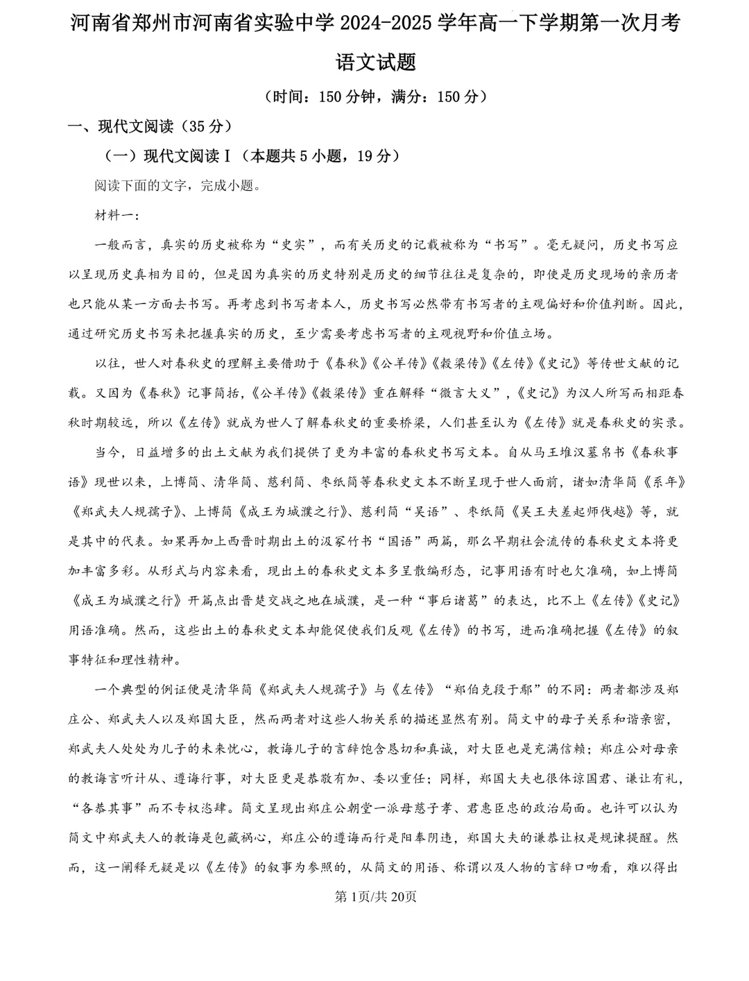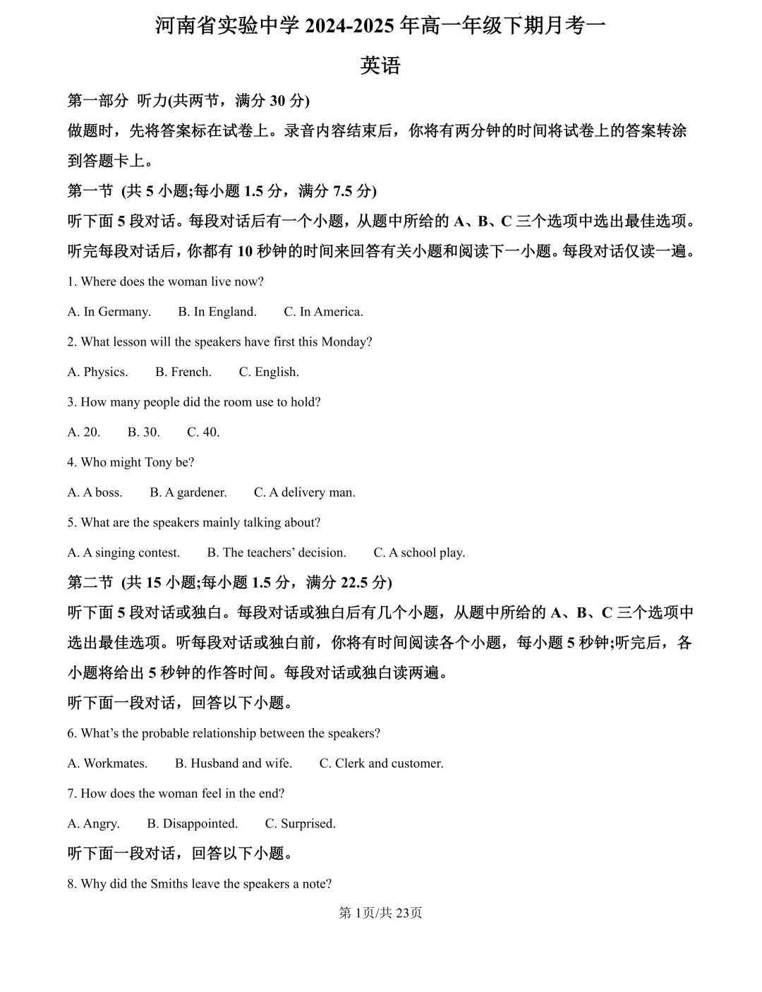 高一下学期第一次月考试卷及答案详解(语文英语)