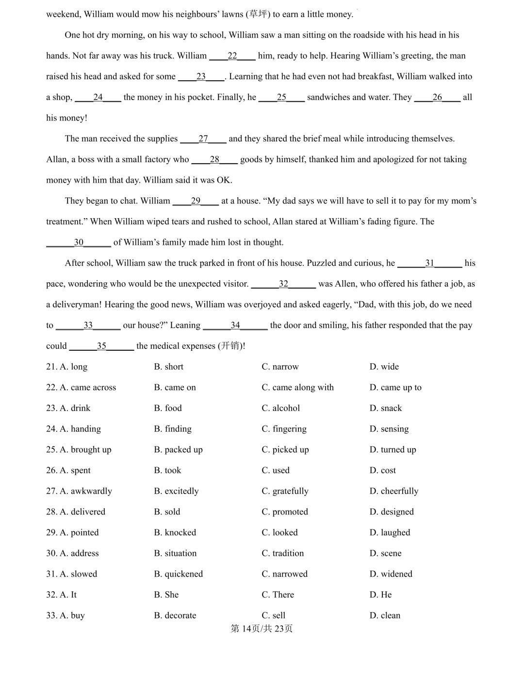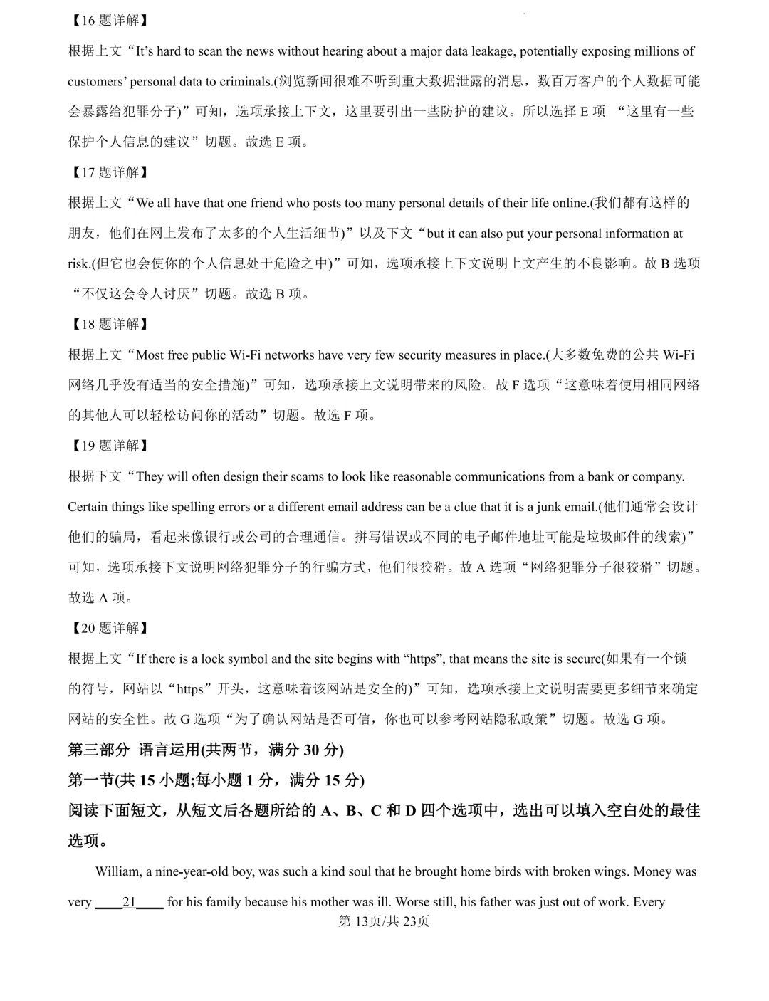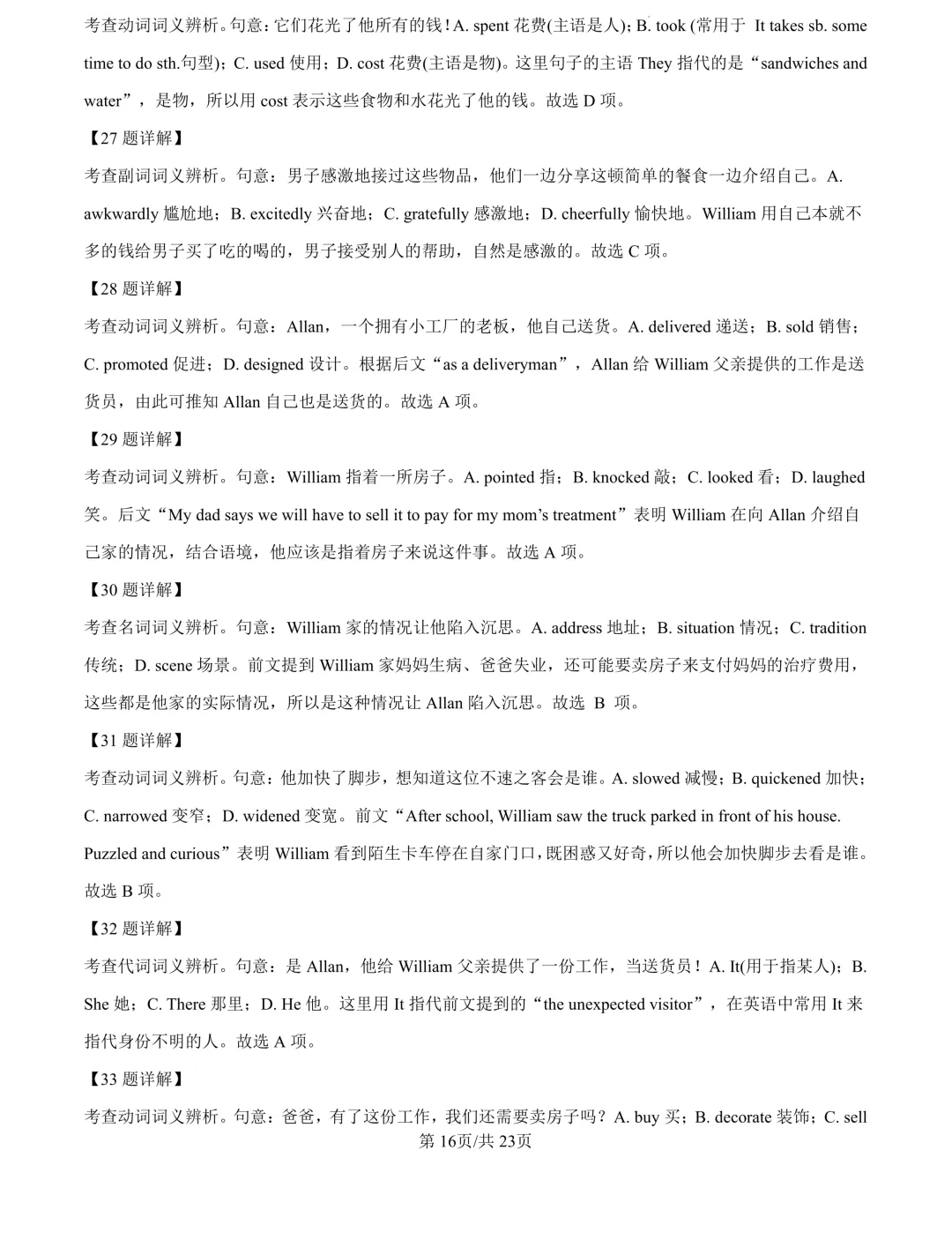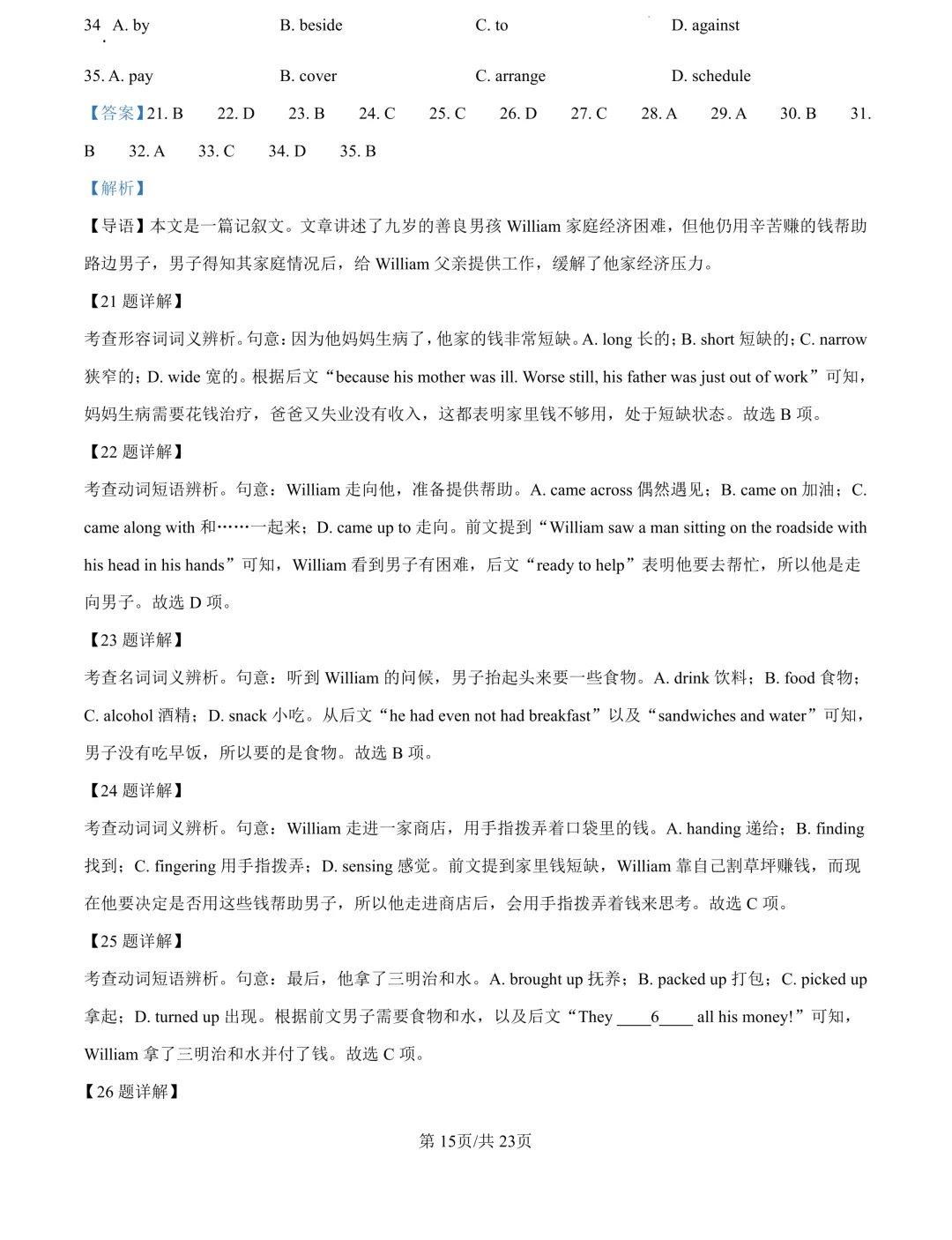1/16奉贤区2025年高三一模英语试卷“21题——35题”解析