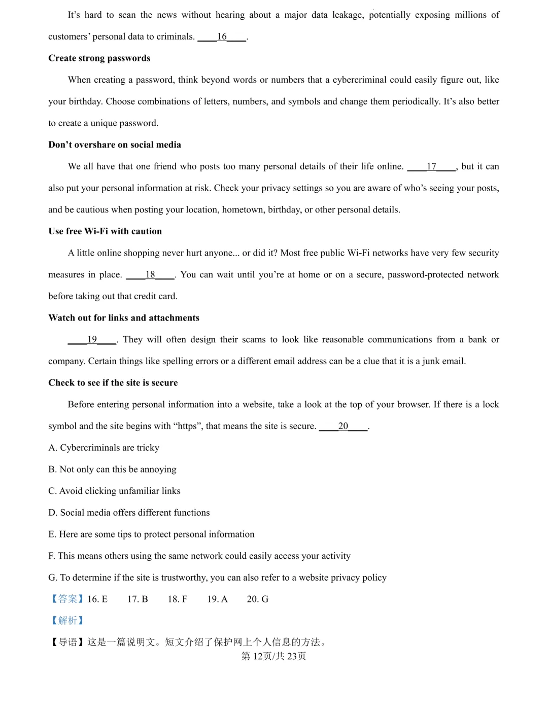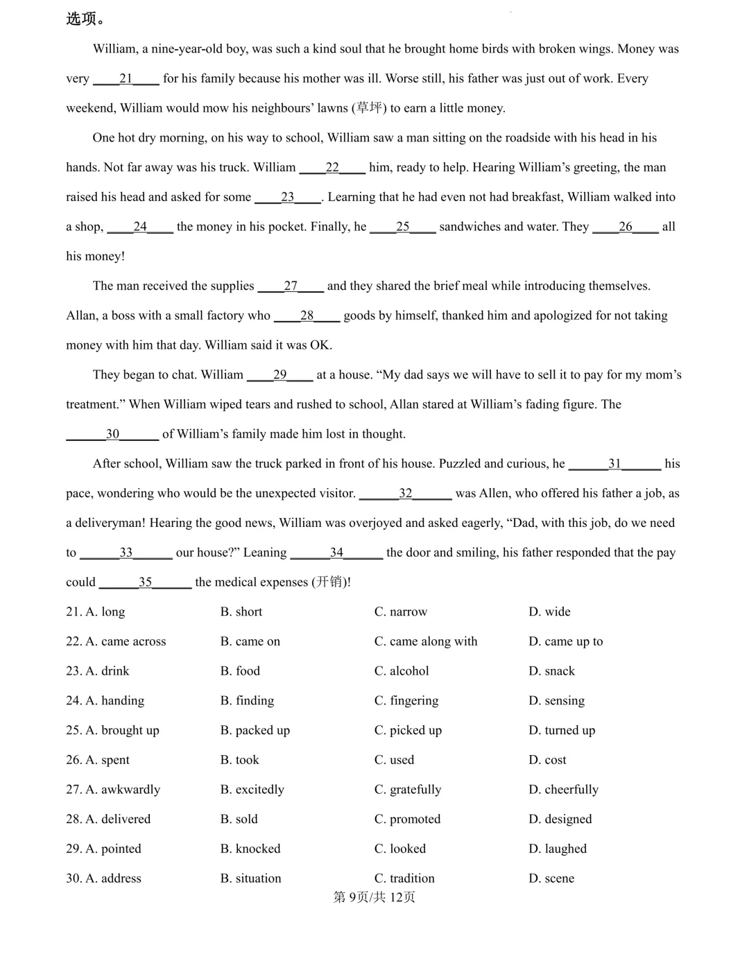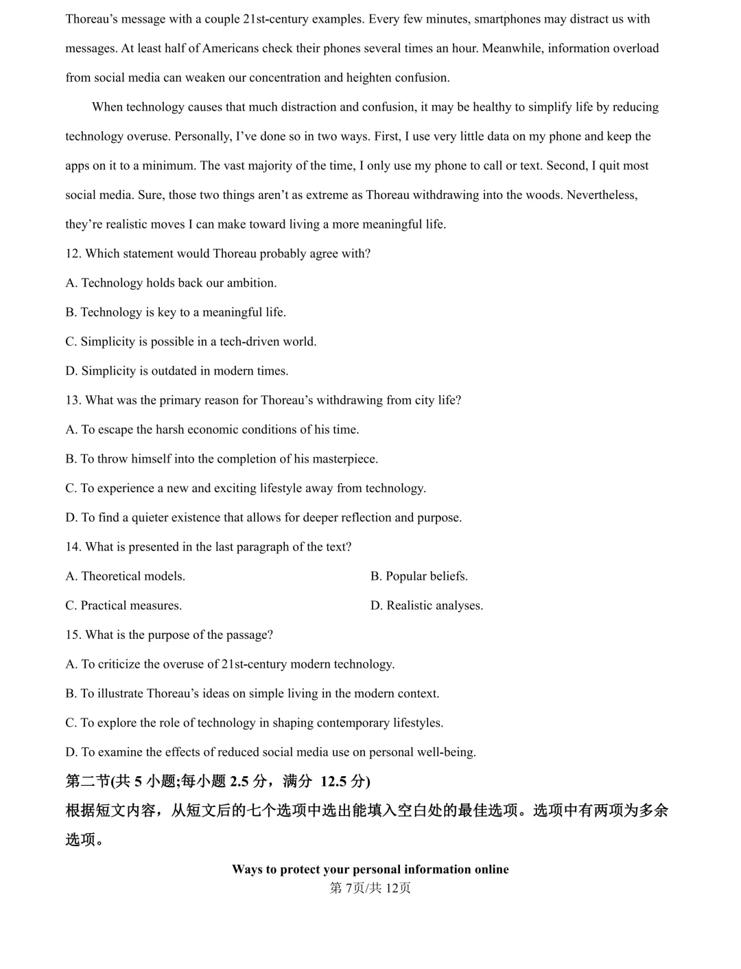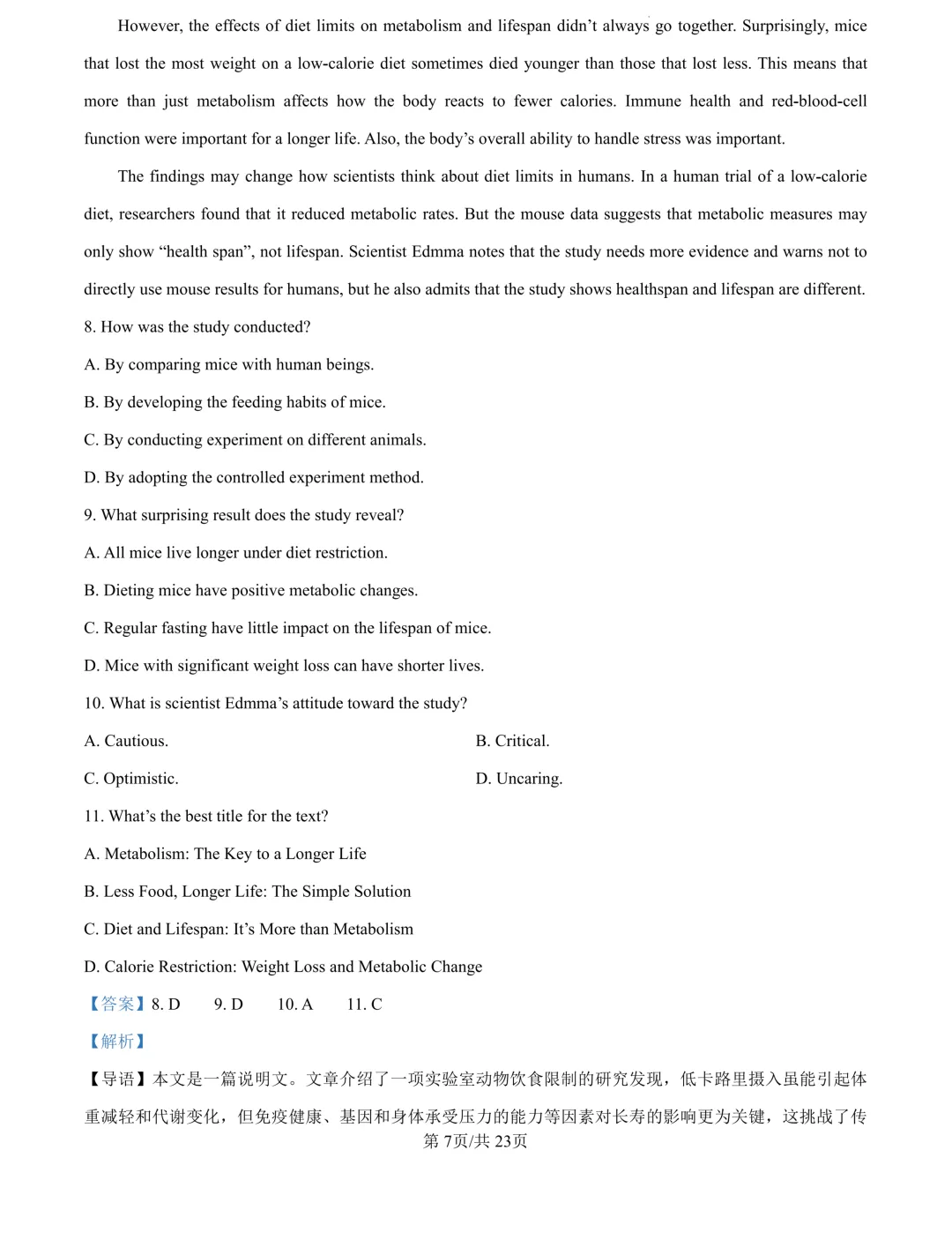 1/16奉贤区2025年高三一模英语试卷“21题——35题”解析