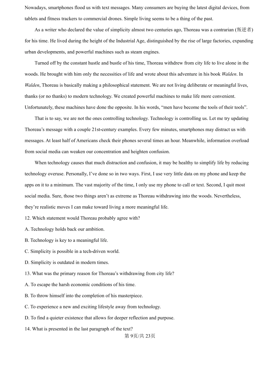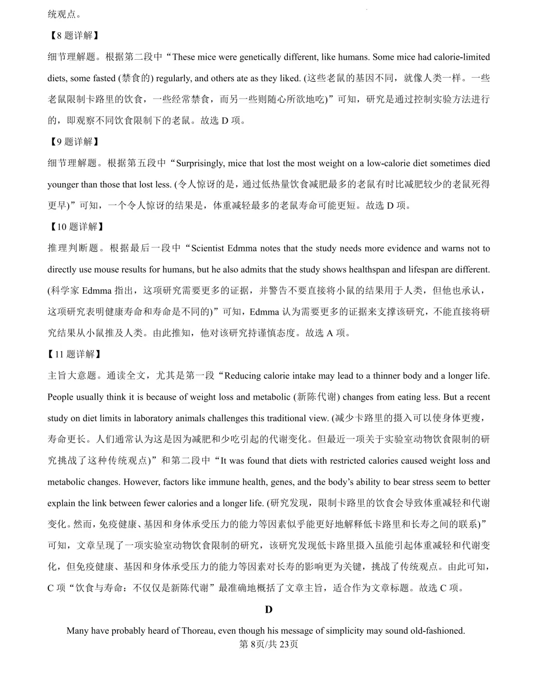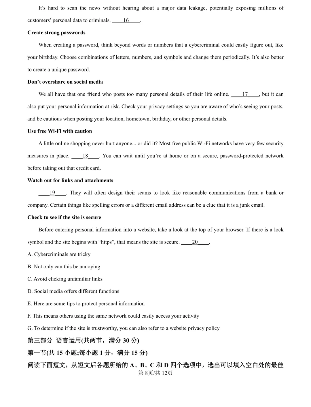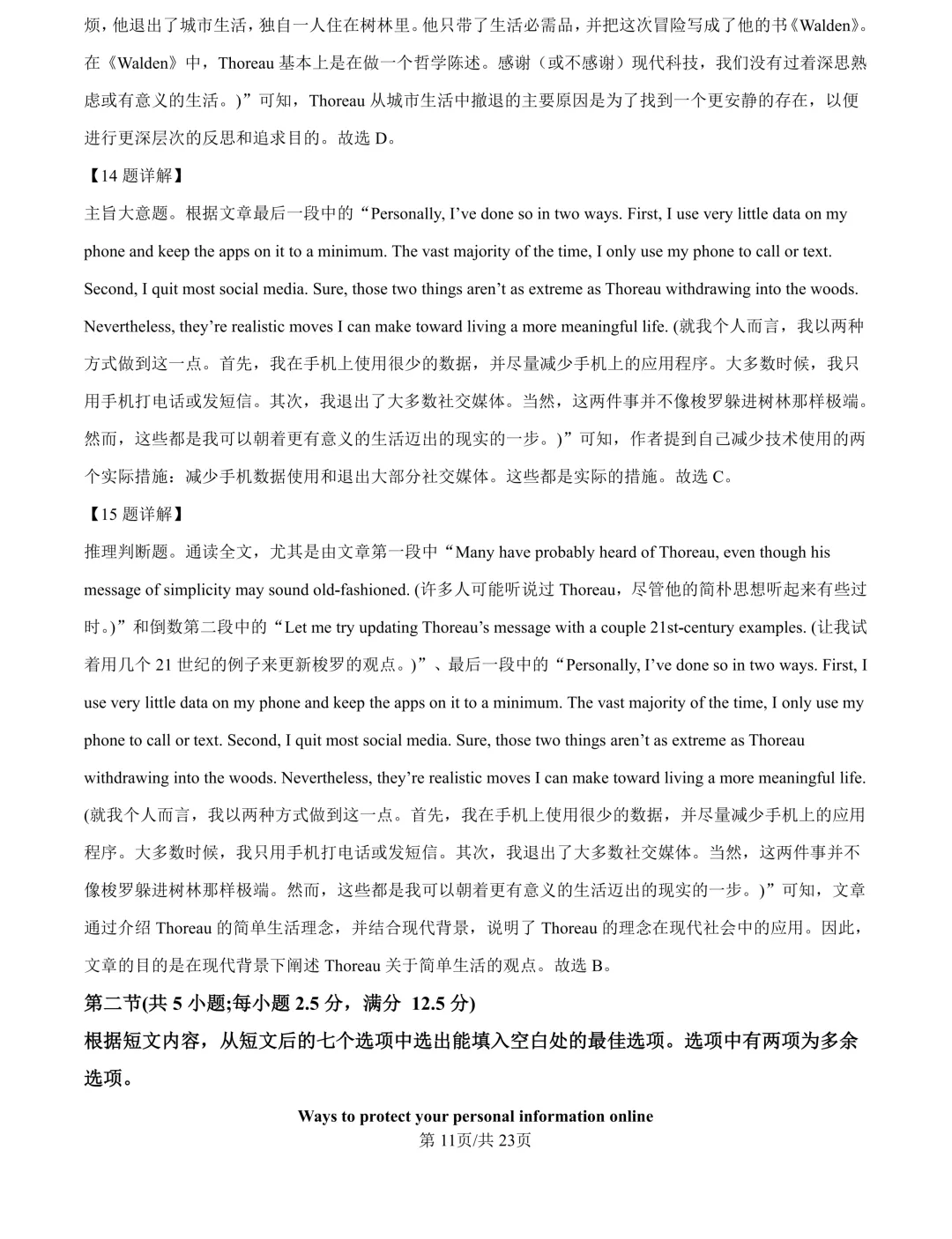 1/16奉贤区2025年高三一模英语试卷“21题——35题”解析