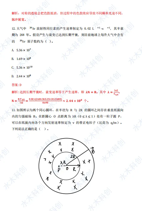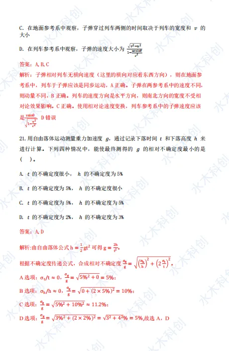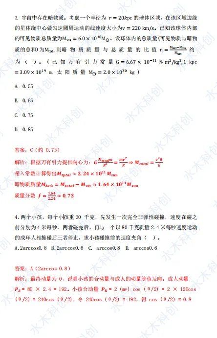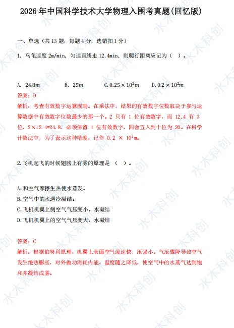 水木教育完整收集本次考试回忆版真题,由教研部物理钱老师逐题精解,整理出最终参考答案供大家参考。若有疏漏,欢迎大家指正!一起来看详情: