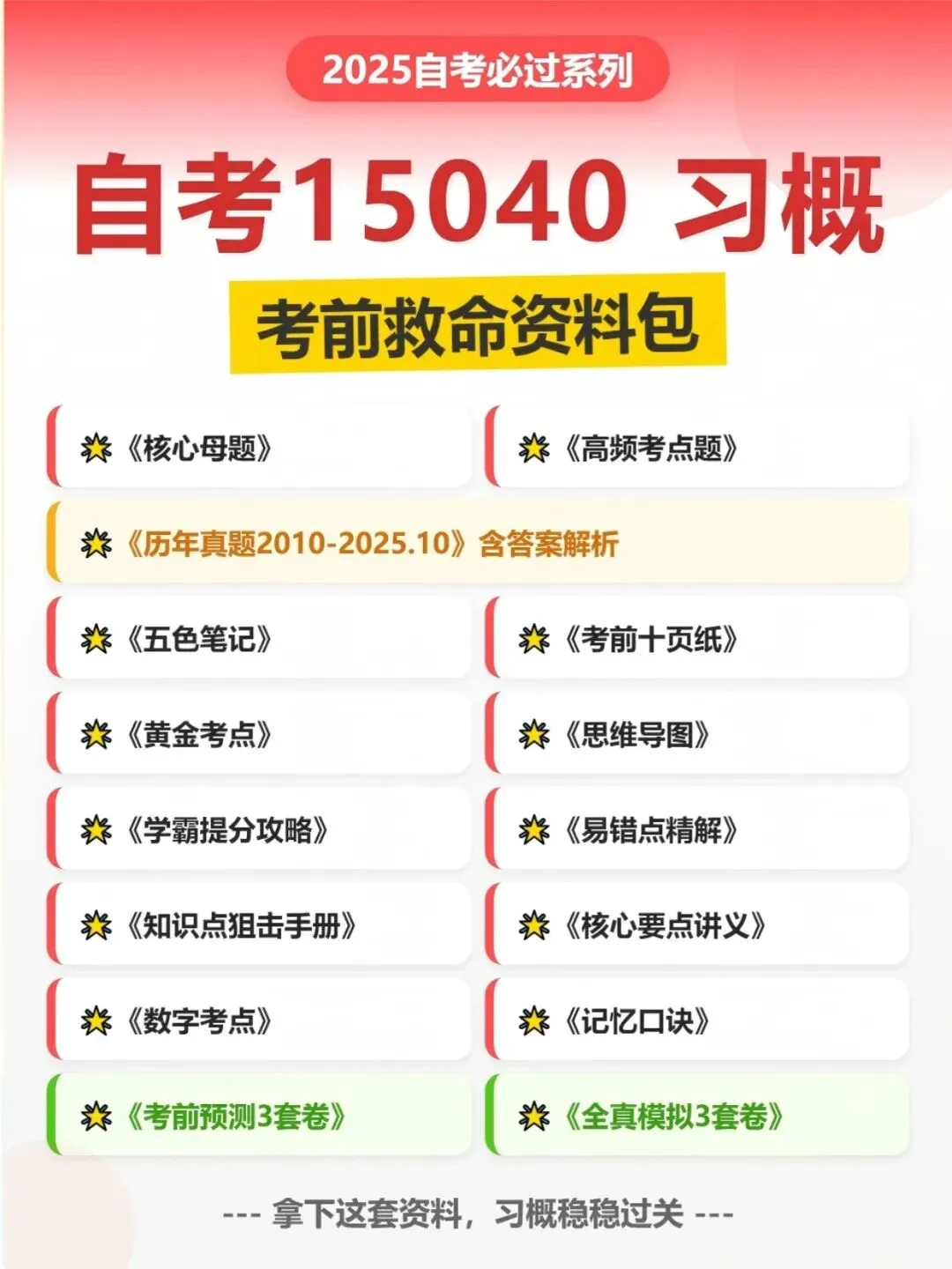 自学考试15040新思想学霸攻略,历年真题含答案解析【2010-2025.10】,五色笔记,考前十页纸,思维导图备考资料包,新大纲刷题软件题库