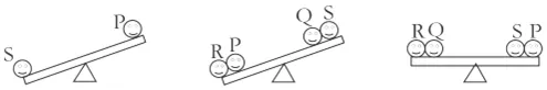 4.P、Q、R、S四人去公园玩跷跷板,根据如图的示意图,判断这四个人从重到轻的顺序为R>S>P>Q.