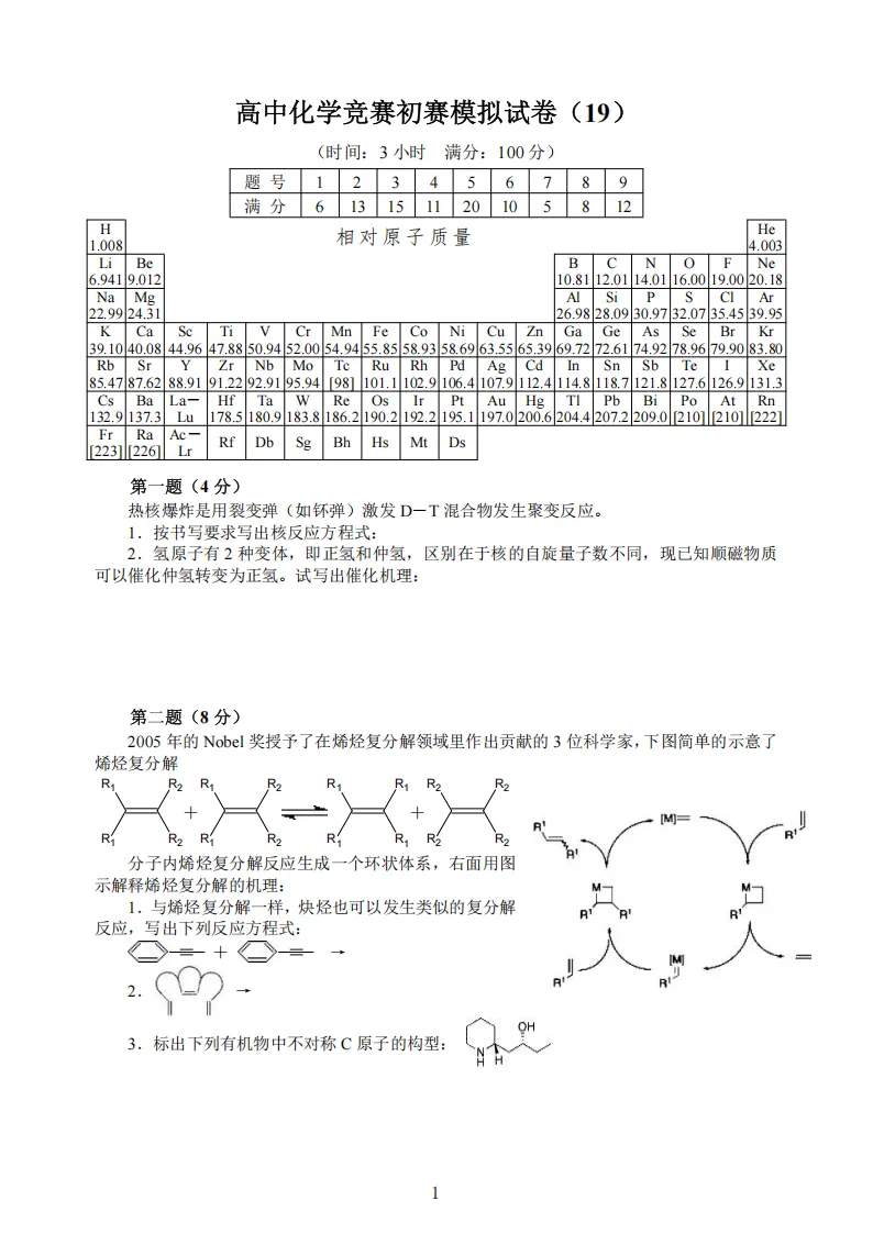 作者寄语:高中化学竞赛初赛模拟试卷(19),7天有效领取,手慢无!!!