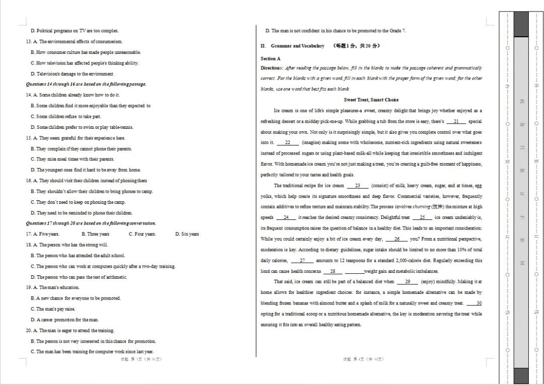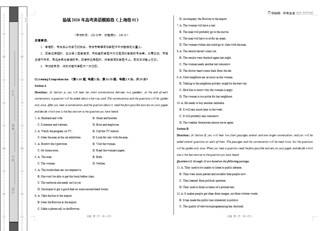 26新汇总 | 上海春考英语试卷(答案)
