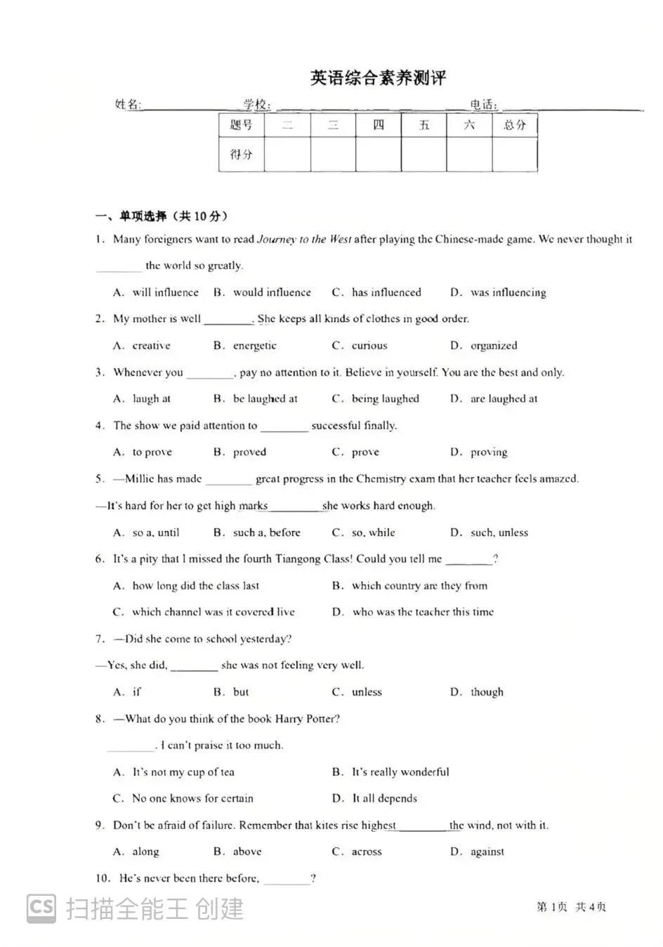 专为春考整理|语文全套试卷可打印(四)