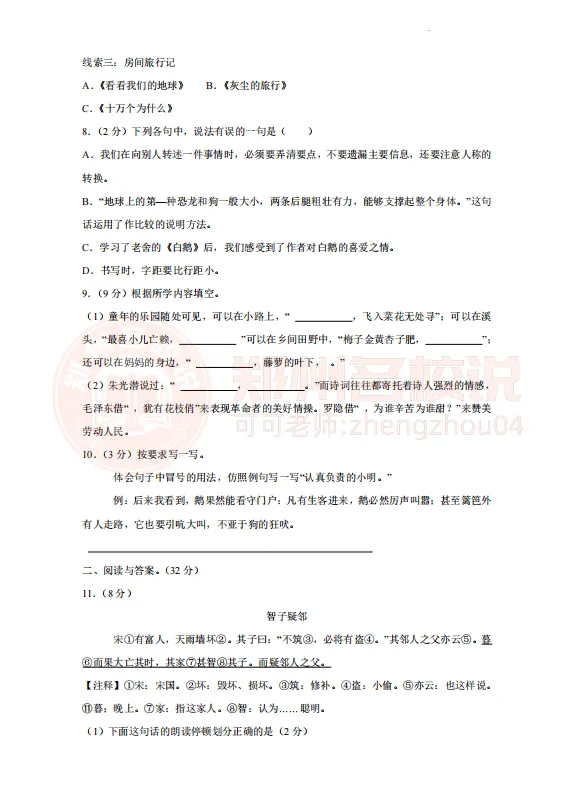 专为春考整理|语文全套试卷可打印(四)