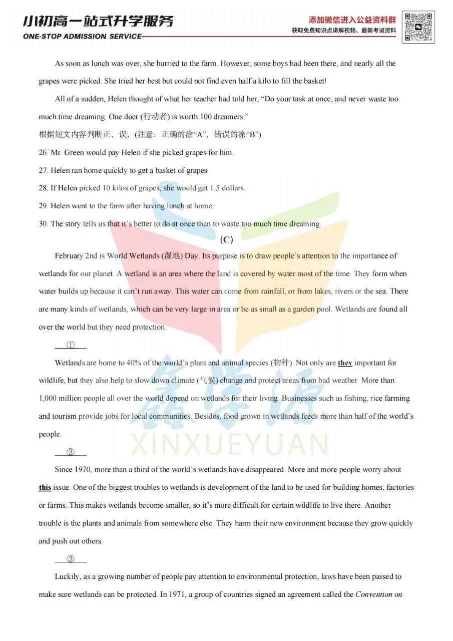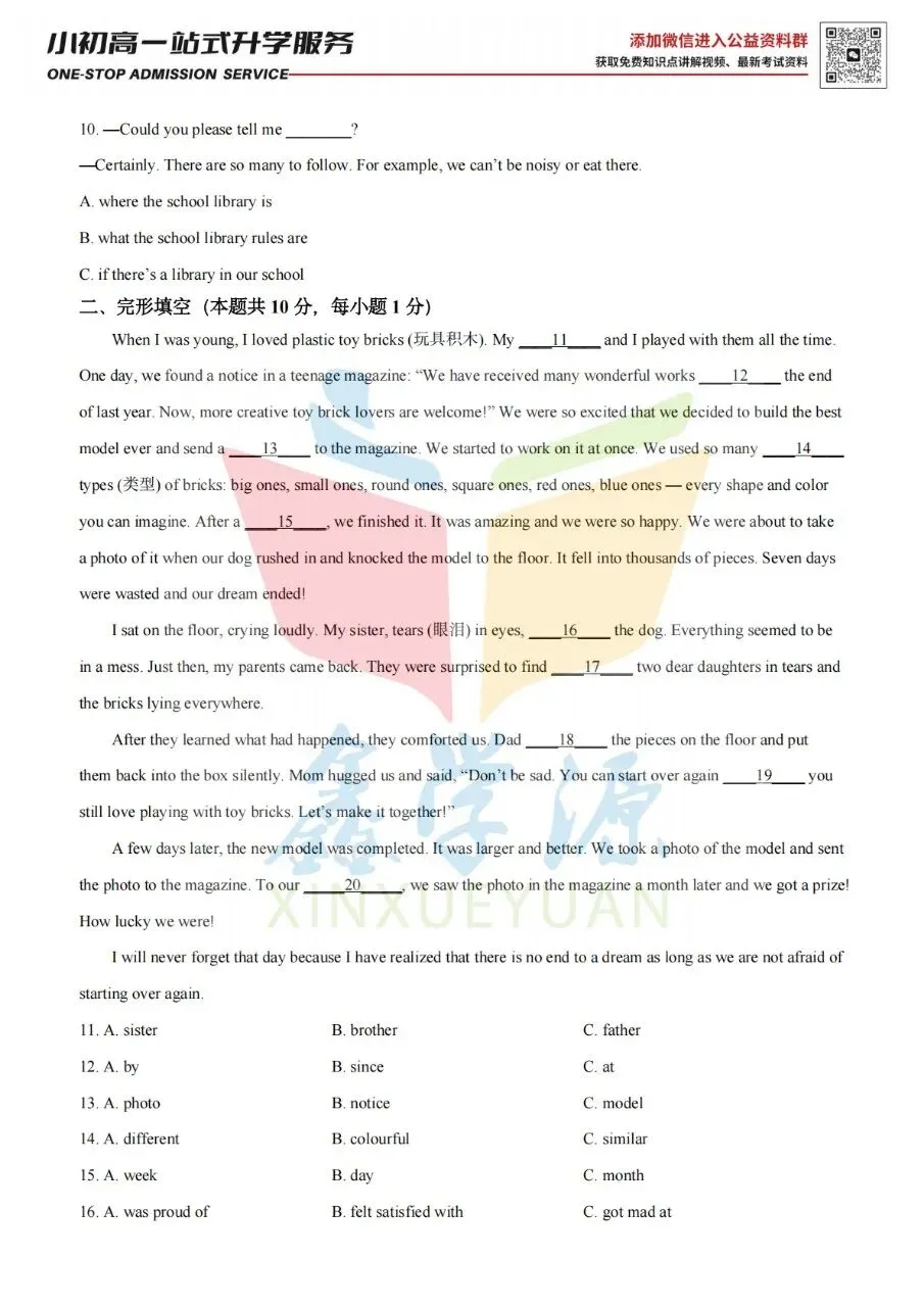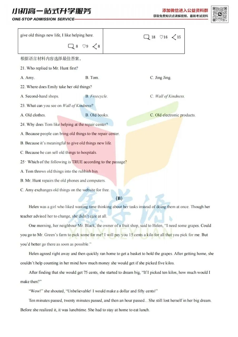 26届小升初中原区热门2英语试卷