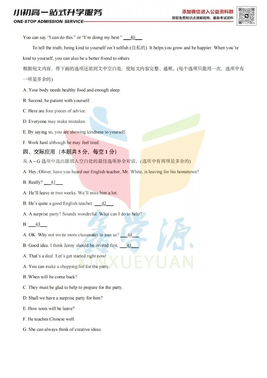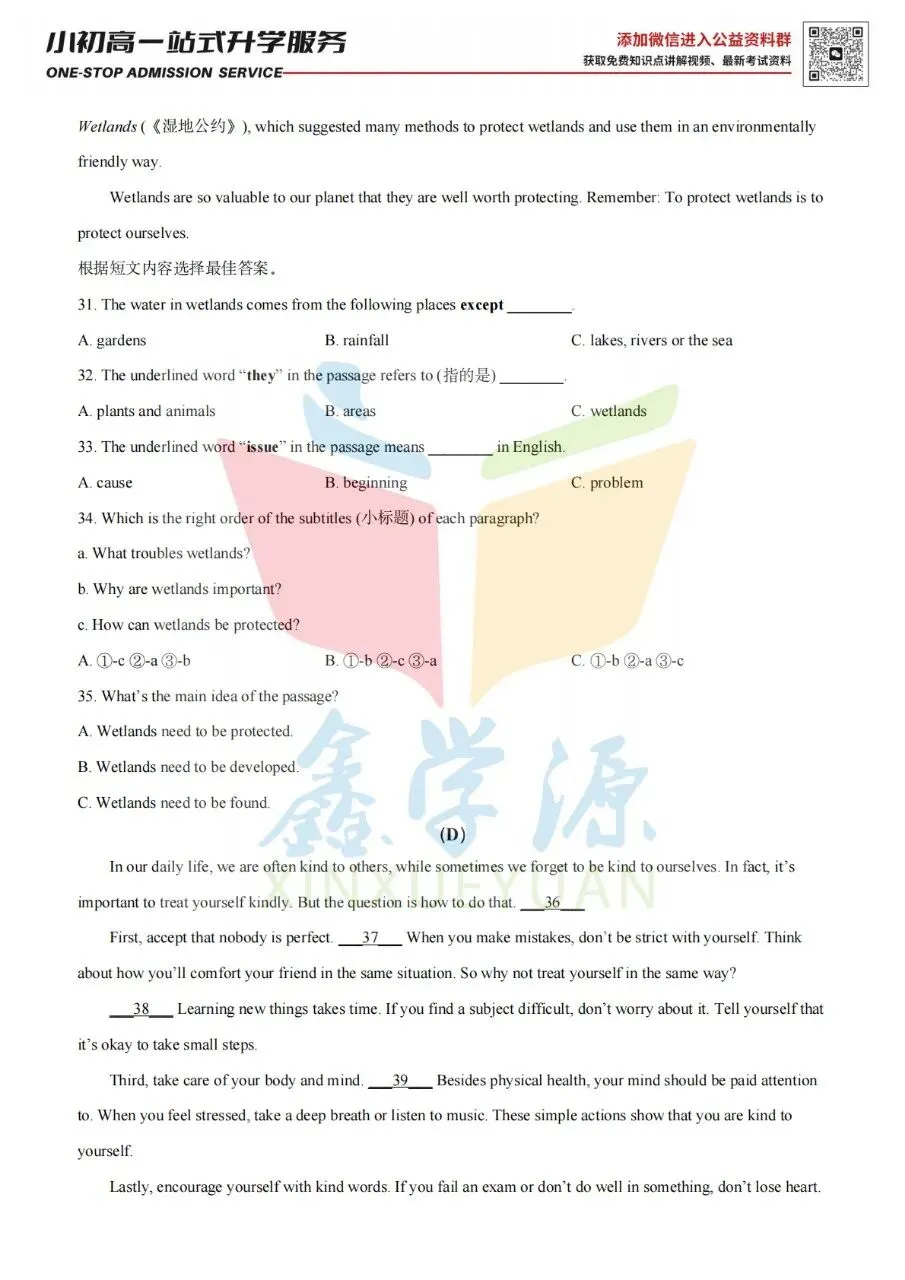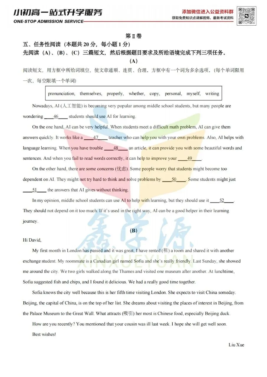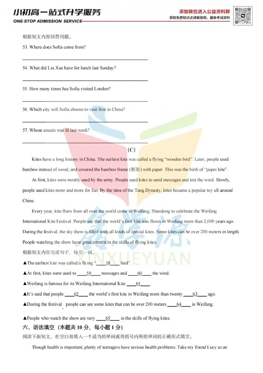 26届小升初中原区热门2英语试卷