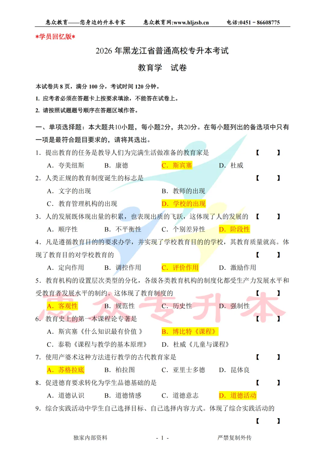 >【教育学】2026年统招专升本考试真题(学生回忆版)