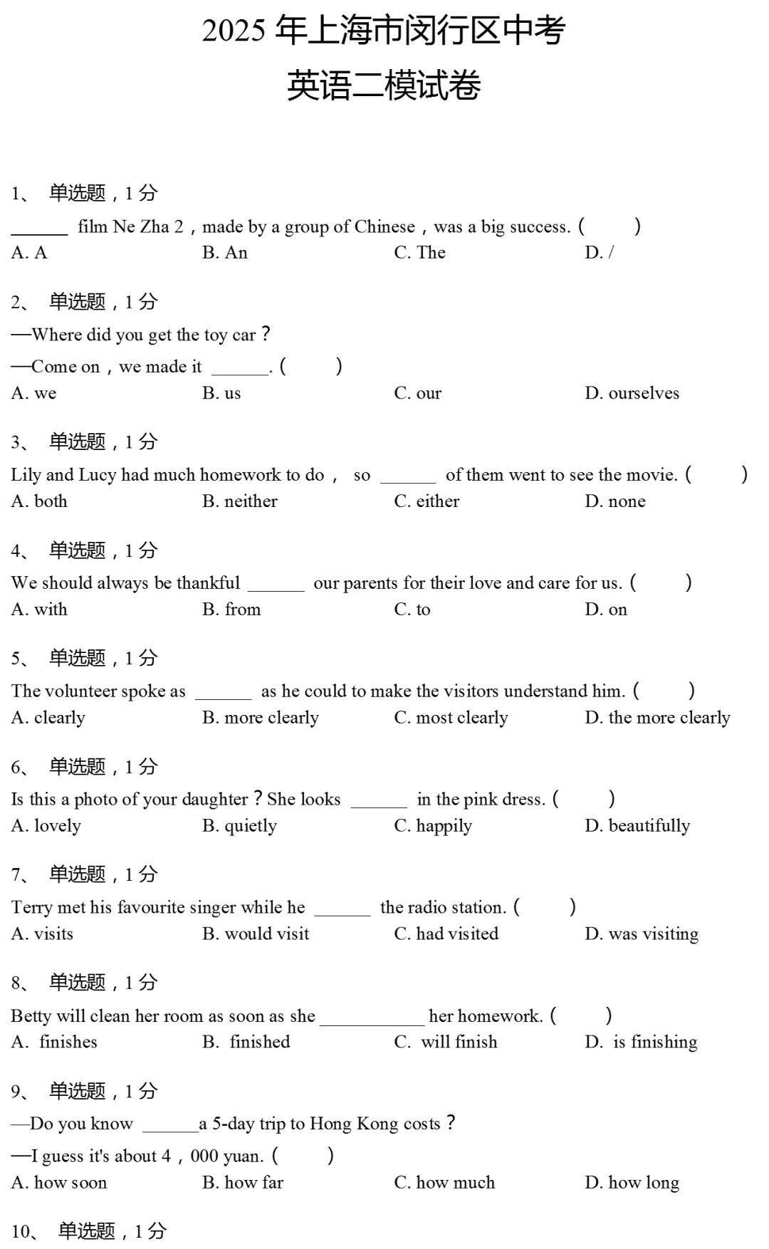 一模定乾坤|中高考一模试卷汇总(全科含答案)