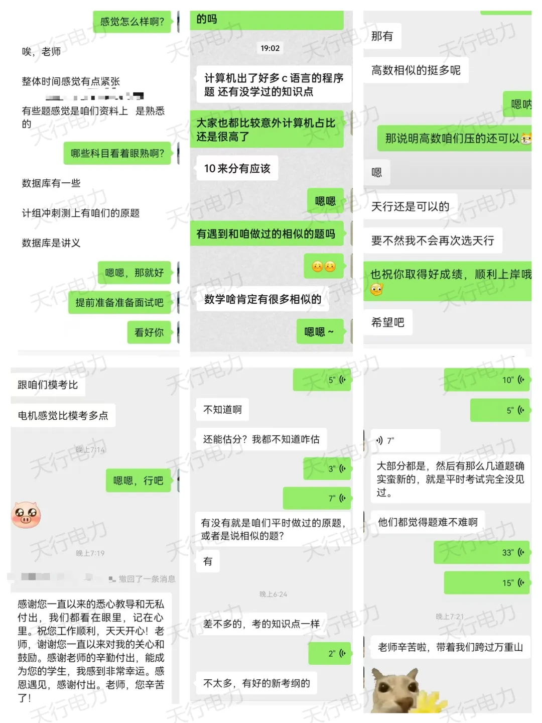 考试结束,来看看各专业同学们的反馈吧,通过学生的反馈不仅展现出天行教研团队在日常教学工作中认真备课的态度,科学推测出题方向,也能看出同学们平常都在积极备考,认真学习!