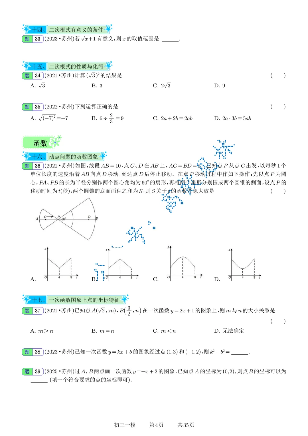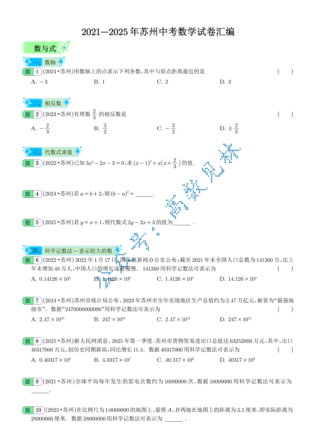 ✅ 近 5 年完整真题2021、2022、2023、2024、2025 苏州中考数学试卷原卷版式,简单水印,可直接打印刷题