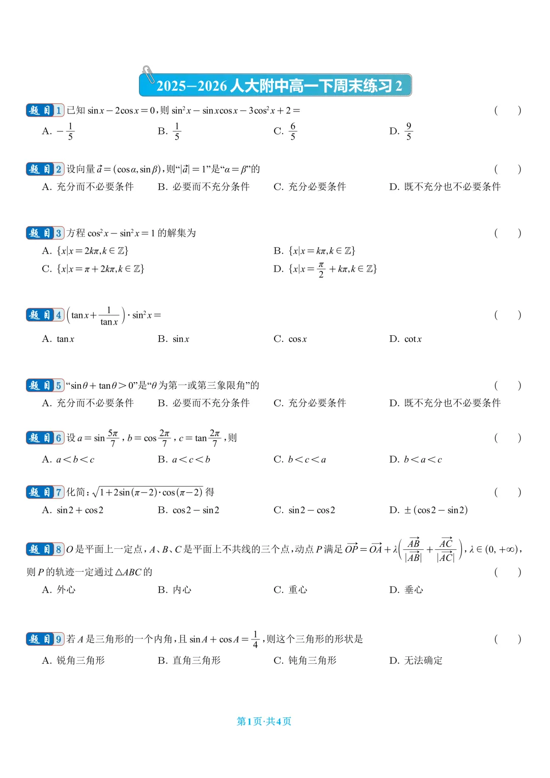 【一模试卷】2026届高三济宁一模、烟台一模、山东名校考试联盟,PDF版,可下载打印